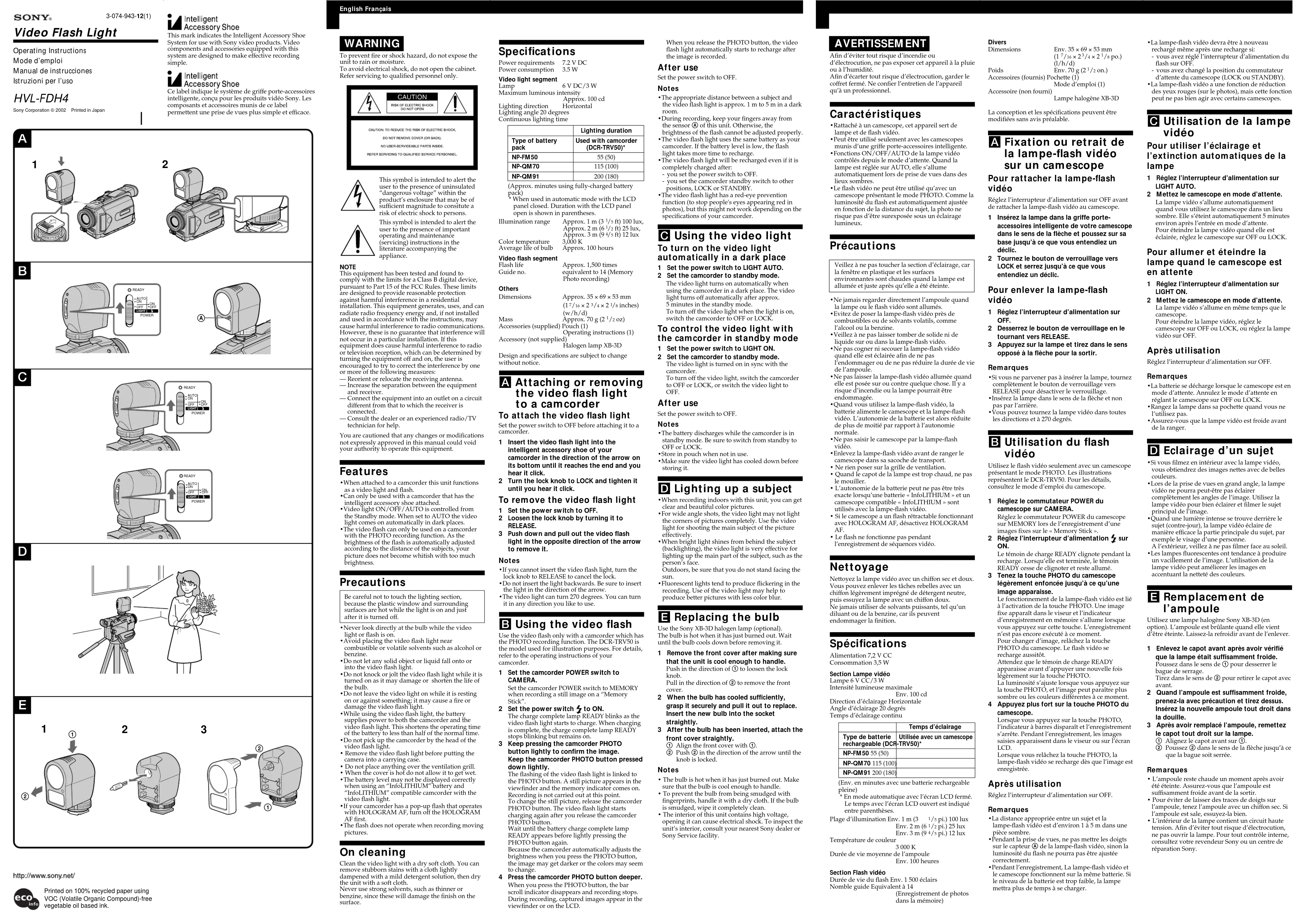 Téléchargez la notice de votre Flash au format PDF gratuitement ! Retrouvez votre notice HVLFDH4 - SONY et reprennez votre appareil électronique en main. Sur cette page sont publiés tous les documents nécessaires à l'utilisation de votre appareil HVLFDH4 de la marque SONY.