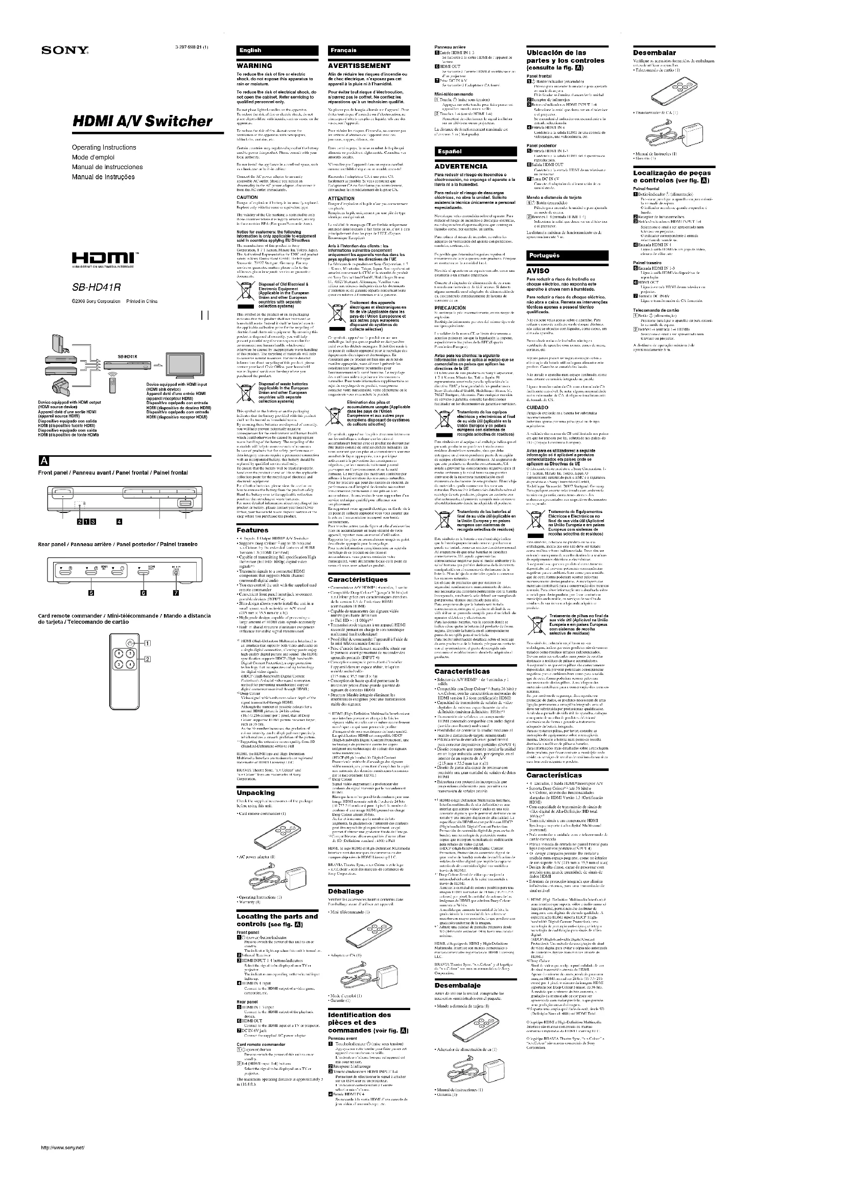 Retrouvez gratuitement la notice de l'appareil SBHD41R SONY au format PDF.