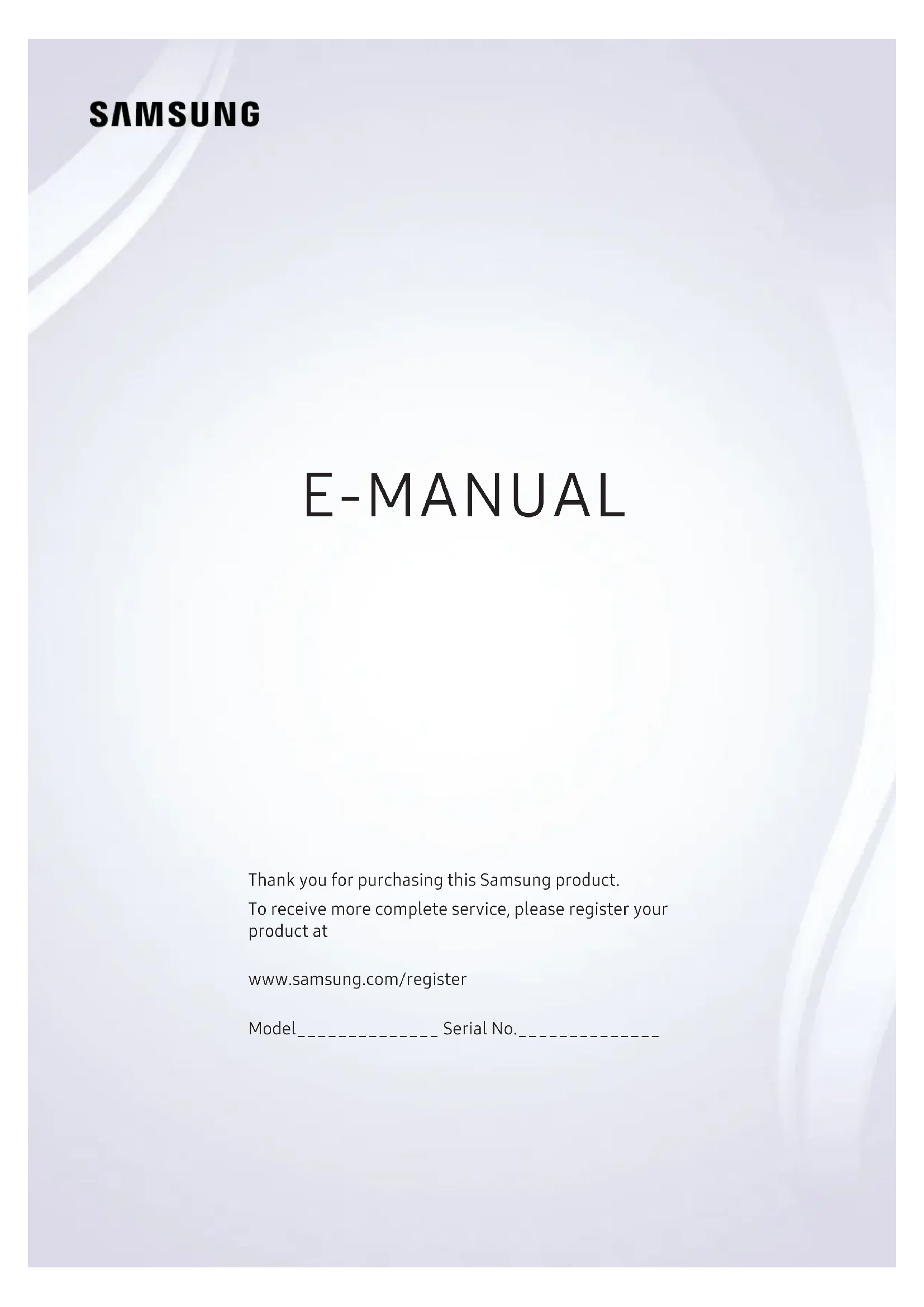E-MANUAL Thank you for purchasing this Samsung product. To receive more complete service, please register your product at www.samsung.com/register Model______________ Serial No.______________Contents Guides de démarrage Utilisation de Smart Hub 1 Utilisation de Smart Hub Modification des Chaînes 2 Exécution de la fonction Modifier la chaîne 2 Réorganisation ou suppression de chaînes Connexions Raccordement d'une Antenne Connexion à Internet 3 Connexion au réseau Internet Connexion à un réseau au moyen d'un dongle mobile Résolution des problèmes de connectivité Internet 7 Résolution des problèmes de connectivité Internet câblée 8 Résolution des problèmes de connectivité Internet sans fil Connexion de périphériques vidéo 9 Connexion à l'aide d'un câble HDMI 9 Connexion avec un câble composant (modèles dotés d'un connecteur COMPONENT IN / AV IN) 10 Connexion à l'aide d'un câble composite (modèles dotés d'un port COMPONENT IN / AV IN) Connexions d'entrée et de sortie audio 11 Connexion à l'aide d'un câble HDMI (ARC) 11 Connexion à l'aide d'un câble audio numérique (optique) 12 Connexion au moyen d'un réseau sans fil 12 Connexion des périphériques Bluetooth Connexion à un ordinateur 13 Connexion via le port HDMI ― Partage d'écran 13 Connexion via Smart View l'application ― Partage d'écran Connexion d'un périphérique mobile 14 Utilisation de la fonction Smart View (Réplication de l'écran) ou du partage de contenu 14 Connexion de périphériques mobiles sans routeur sans fil (Wi- Fi Direct) 14 Connexion à l'aide d'un périphérique mobile via Application Smart View Basculement entre les différents périphériques externes connectés au téléviseur 15 Changement de signal d'entrée 15 Modification des périphériques externes 15 Utilisation des autres fonctions Remarques sur la connexion 16 Remarque sur la connexion HDMI 17 Remarque sur la connexion des périphériques audio 17 Remarque sur la connexion des ordinateurs 17 Remarque sur la connexion des périphériques mobiles Télécommande et périphériques À propos du Samsung Smart Remote Commande du téléviseur à l'aide d'un clavier ou d'une manette de jeu 20 Connexion d'un clavier USB 20 Connexion d'un clavier et d'une manette de jeu Bluetooth 20 Utilisation du clavier Saisie de texte à l'aide du clavier QWERTY à l'écran 21 Utilisation des autres fonctions IIFonctions Smart Smart Hub 23 Affichage de Barre d'accès rapide 24 Lancement automatique de Smart Hub 24 Lancement automatique de la dernière application utilisée 24 Test des connexions Smart Hub 24 Réinitialisation de Smart Hub Utilisation d'un compte Samsung 25 Création d'un compte Samsung 26 Ouverture d'un compte Samsung Utilisation du service Mes Applications 28 Installation et exécution d'une application 29 Gestion des applications achetées ou installées 30 Evaluation d'applications 30 Notation des applications achetées 30 Utilisation des autres caractéristiques et fonctions de l'application Utilisation du e-Manual 31 Lancement du e-Manual 31 Utilisation des boutons dans l'e-Manual Utilisation du navigateur Web. Lecture des images/vidéos/fichiers musicaux 33 Lecture de contenu multimédia 33 Fonctions de l'écran de liste de contenu multimédia Visionnement du téléviseur Enregistrement de programmes 34 Enregistrement de programmes 34 Gestion de la liste des enregistrements planifiés 35 Visionnage de programmes enregistrés Configuration d'un Programmer visionnage 35 Configuration du visionnage des programmes d'une chaîne 36 Modification d'un visionnage programmé Utilisation de Timeshift Utilisation du Liste des chaînes Modification de chaînes 38 Ré-enregistrement et suppression d'une chaîne 38 Modification de chaînes enregistrées 38 Verrouillage/déverrouillage des chaînes Création d'une liste de chaînes favorites personnalisée 39 Enregistrement des chaînes dans la liste de chaînes favorites 39 Affichage et sélection des chaînes dans les listes de favoris uniquement Modification d'une Favourites List (Liste des Favoris) 40 Suppression des chaînes enregistrées d'une liste de chaînes favorites 40 Réorganisation d'une liste de chaînes favorites 40 Modification du nom d'une liste de chaînes favorites Des programmes sportifs plus réalistes avec Mode Sport 41 Extraction automatique des moments forts 42 Utilisation des fonctions disponibles pendant le visionnage d'événements sportifs en mode Sports 42 Utilisation du Mode Cinéma indien II IIIFonctions de prise en charge du visionnage de programmes télévisés 42 Recherche des chaînes disponibles 42 Sélection des options de diffusion de l’audio 42 Configuration des paramètres de diffusion avancés 43 Réglage du paramètre Zone 43 Réglage manuel des signaux de diffusion 44 Réglage précis de l'écran 44 Transfert de la liste des chaînes 44 Définition du système satellite Image et son Réglage de la qualité des images 45 Sélection du mode d'image 45 Configuration des paramètres d'image avancés Fonctions de prise en charge des images 47 Affichage d'une image incrustée dans l'image (PIP) 47 Modification du format de l'image Réglage de la qualité du son 49 Sélection du mode son 49 Configuration des paramètres audio avancés Utilisation des fonctions de prise en charge du son 51 Choix des haut-parleurs 51 Diffusion du son du téléviseur via un appareil Bluetooth 52 Diffusion du son du téléviseur via un haut-parleur Multiroom. 52 Spécification du type d'installation du téléviseur Système et assistance Réglage de l'heure et utilisation de la minuterie 53 Réglage de l'heure actuelle 53 Utilisation des minuteries Utilisation des fonctions Protec brûl. écran et Mode éco. 55 Protection contre les brûlures d'écran 55 Réduction de la consommation d'énergie du téléviseur Utilisation de Anynet+ (HDMI-CEC) 56 Connexion d'un périphérique externe via Anynet+ et utilisation des menus correspondants Mise à jour du logicie
