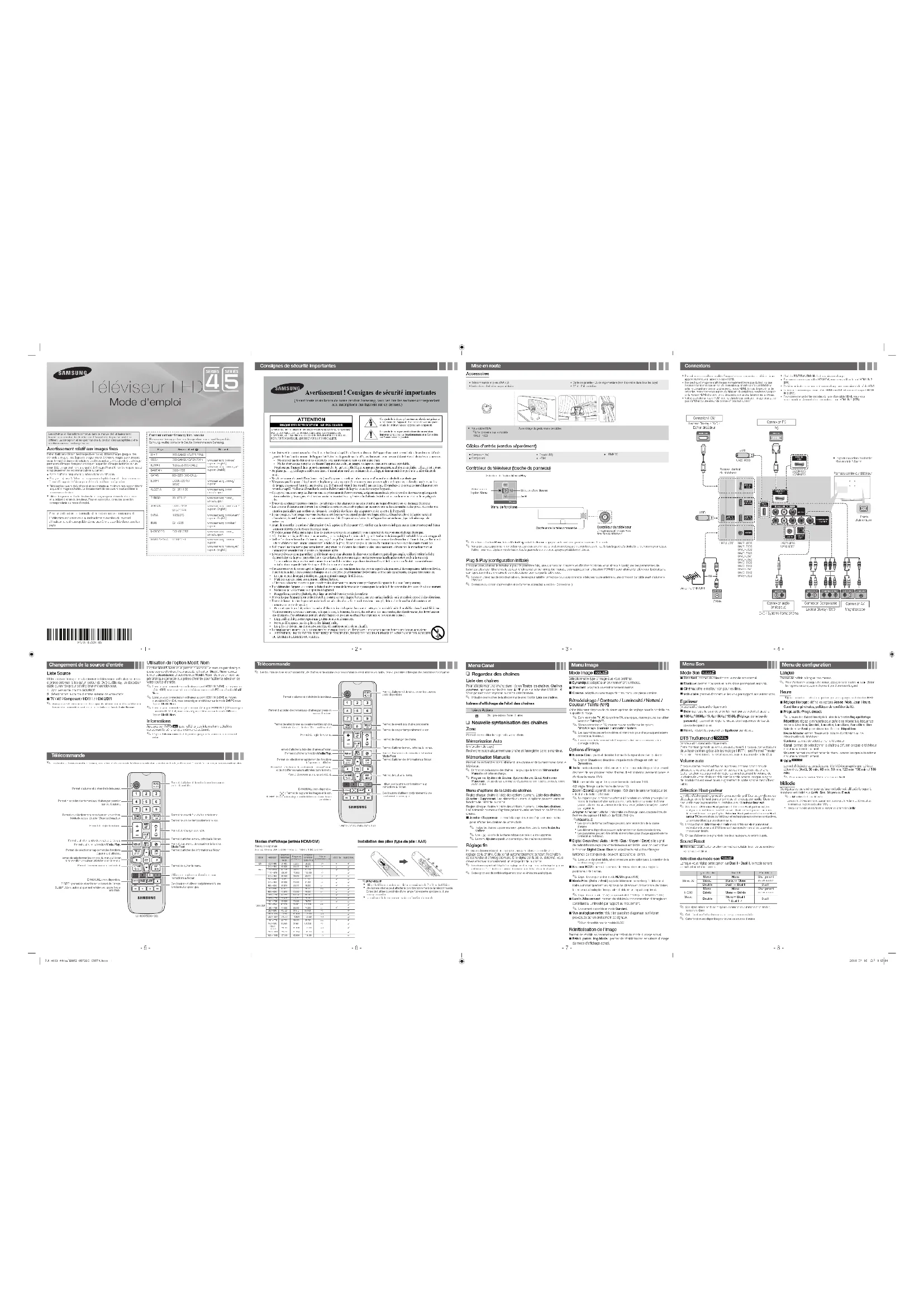 Avertissement ! Consignes de sécurité importantes (AvanttouteinstallationdevotreproduitSamsung,veuillezlirelessectionscorrespondantauxinscriptionsquifigurentsurcedernier.) ATTENTION