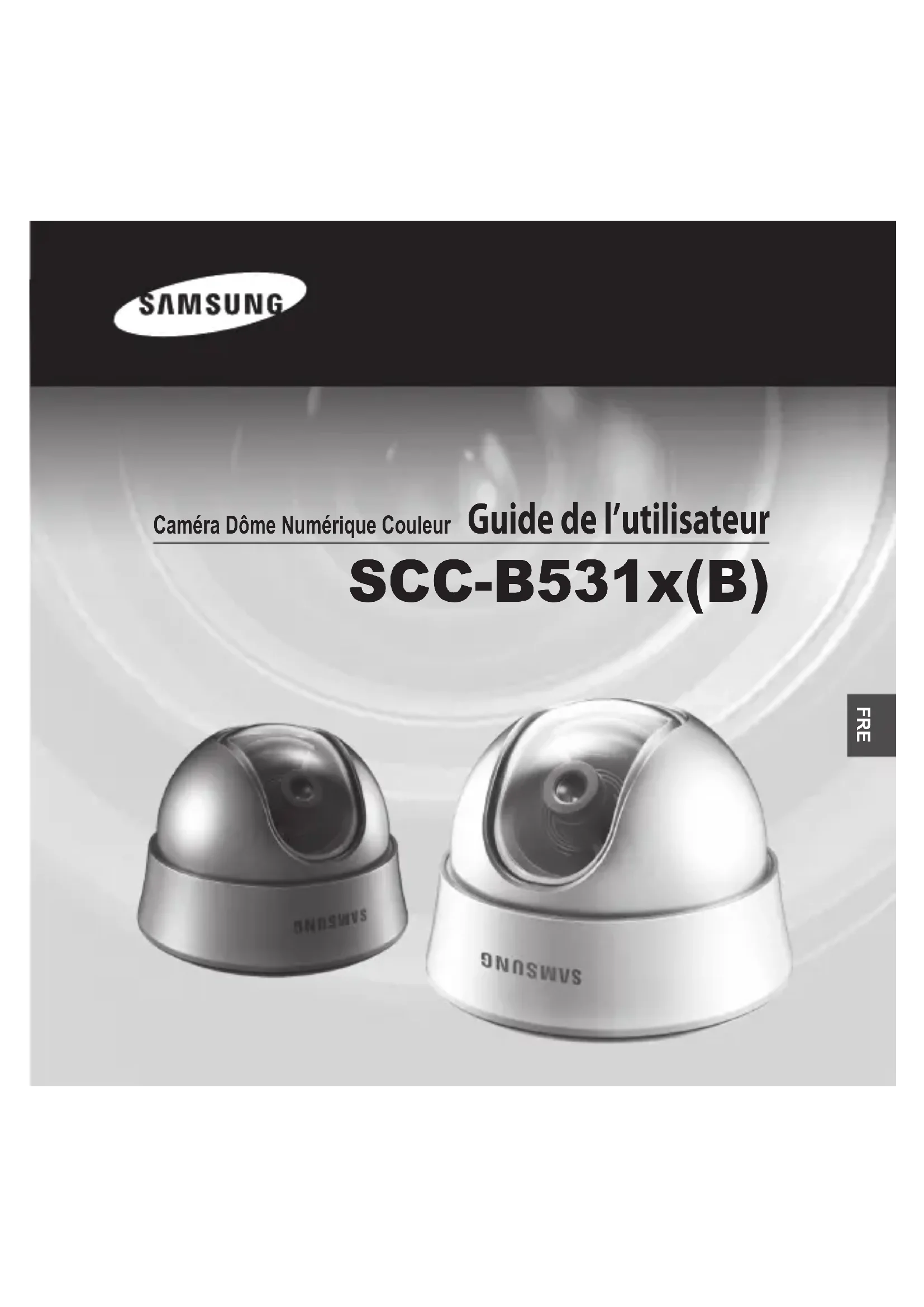 Fonctions Détails Commandes Verrouillage de ligne (LL) Sens-up ; Obturation à vitesse réduite (LSS) Renversement horizontal (H-REV) Renversement vertical (V-REV) Compensation du rétroéclairage (BLC) Réglage automatique de l’amplification (AGC) Passage de la couleur au N/B lors du changement nuit et jour (D/N) Balance automatique des blancs (AWB) Réduction automatique de bruit (DNR) Compensation des défauts CCD dynamique couleur de produit SCC-B531xP : Blanc / SCC-B531xBP : noir Température fonctionnelle -10°C à +50°C Humidité fonctionnelle 90% maxi Taille 102(Ø) x 78(H)mm Poids 190g AB68-00647D(01)Fre.indd 17 2007-05-14 ソタネト 4:35:16AB68-00647D(01)Fre.indd 18 2007-05-14 ソタネト 4:35:16Comment éliminer ce produit (déchets d’équipements électriques et électroniques) (Applicable dans les pays de l’Union Européen et aux autres pays européens disposant de systémes de collecte sélective) Ce symbole sur le produit ou sa documentation indique qu’il ne doit pas être éliminé en fin de vie avec les autres déchets ménagers. L’élimination incontrôlée des déchets pouvant porter préjudice à l’environnement ou à la santé humaine, veuillez le séparer des autres types de déchets et le recycler de façon responsable. Vous favoriserez ainsi la réutilisation durable des ressources matérielles. Les particuliers sont invités à contacter le distributeur leur ayant vendu le produit ou à se renseigner auprès de leur mairie pour savoir où et comment ils peuvent se débarrasser de ce produit afin qu’il soit recyclé en respectant l’environnement. Les entreprises sont invitées à contacter leurs fournisseurs et à consulter les conditions de leur contrat de vente. Ce produit ne doit pas être éliminé avec les autres déchets commerciaux. AB68-00647D(01)Fre.indd 19 2007-05-14 ソタネト 4:35:16AB68-00647D(01)Fre.indd 20 2007-05-14 ソタネト 4:35:16Guía de Usuario SCC-B531x(B) Cámara digital color tipo domo SPA AB68-00647D(01)Spa.indd 1 2007-05-14 ソタネト 4:40:512