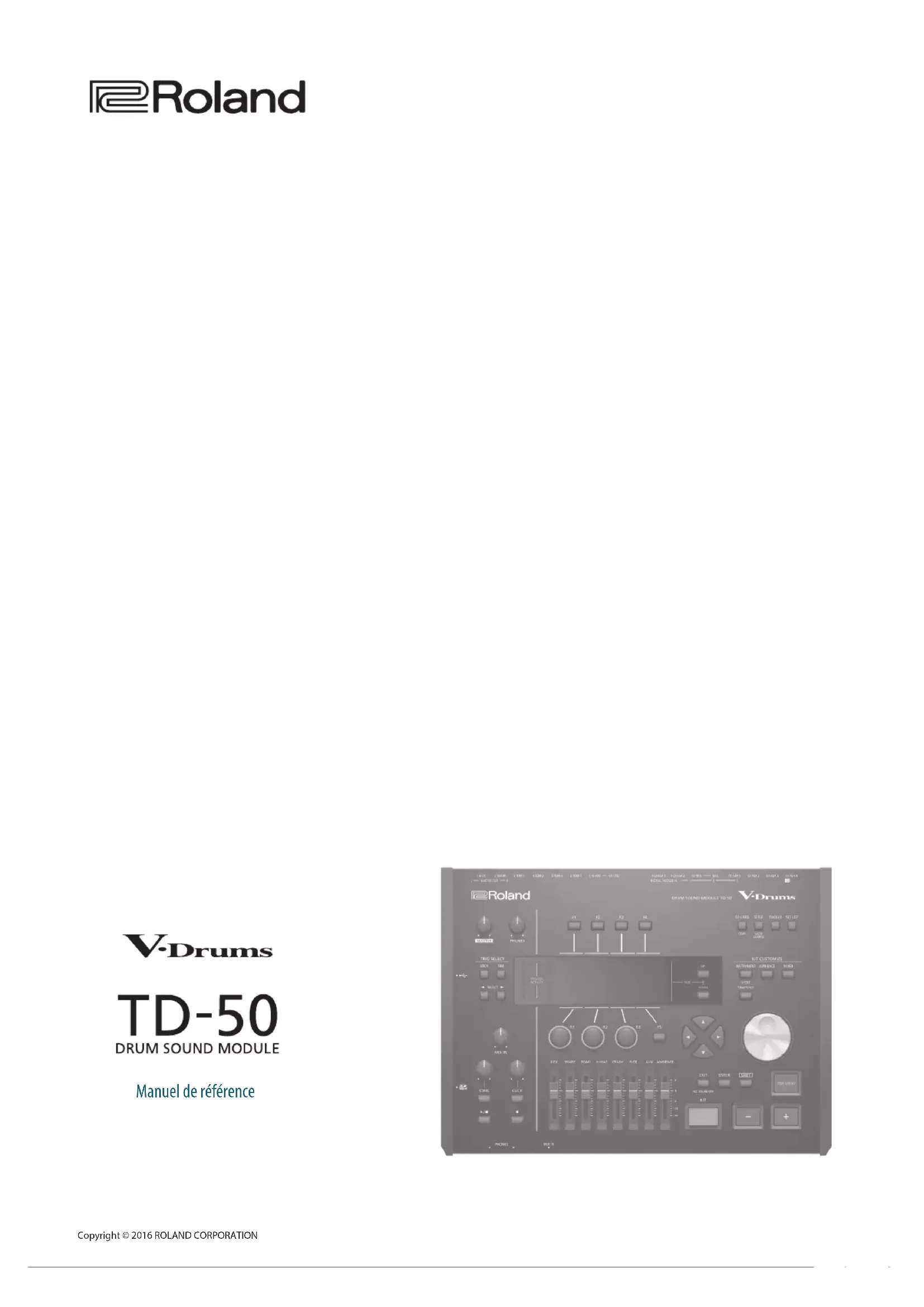 - Copyright © 2016 ROLAND CORPORATION Manuel de référence2 Sommaire Préparations 4 Présentation du TD-50 p. 4