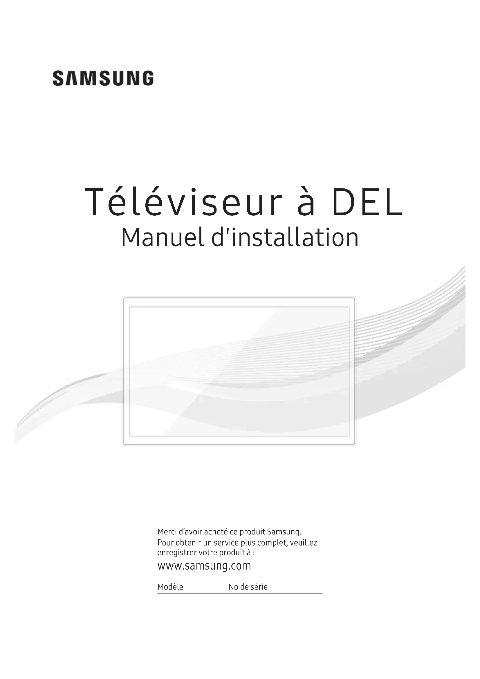 Merci d’avoir acheté ce produit Samsung. Pour obtenir un service plus complet, veuillez enregistrer votre produit à: www.samsung.com Modèle No de série Téléviseur à DEL Manuel d'installation