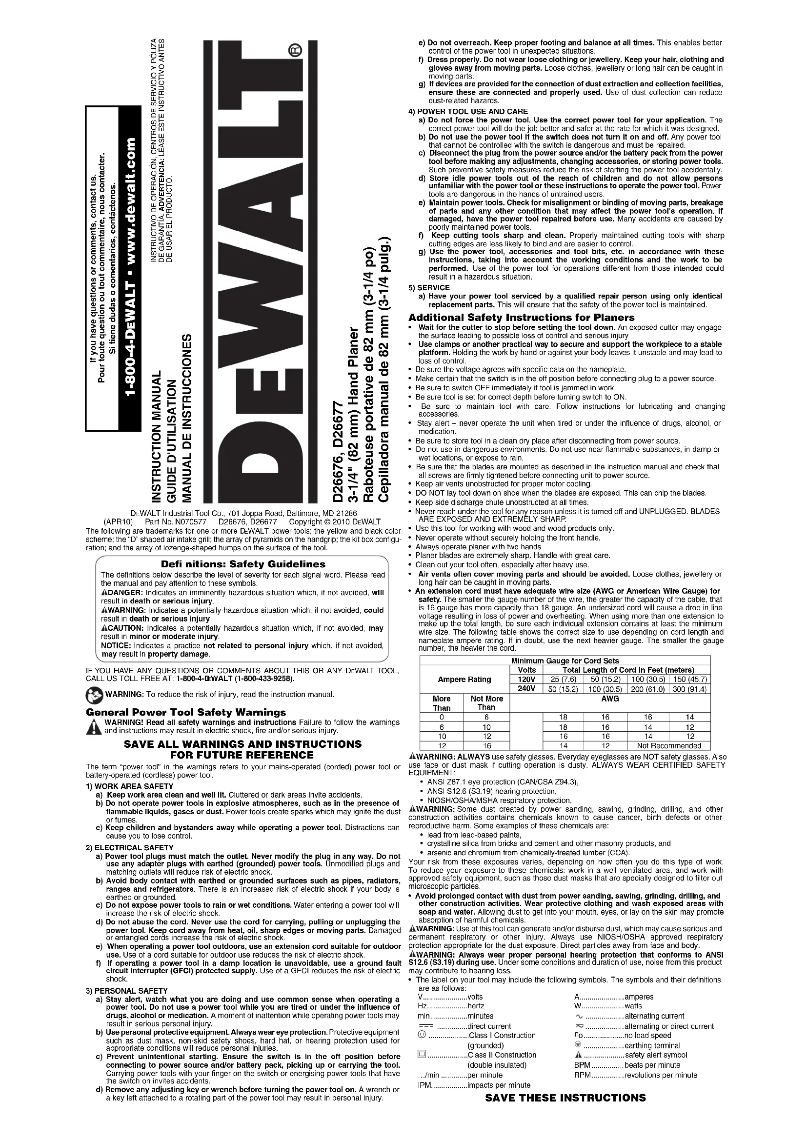 D26677K - Raboteuse DEWALT - Notice d'utilisation et mode d'emploi gratuit
