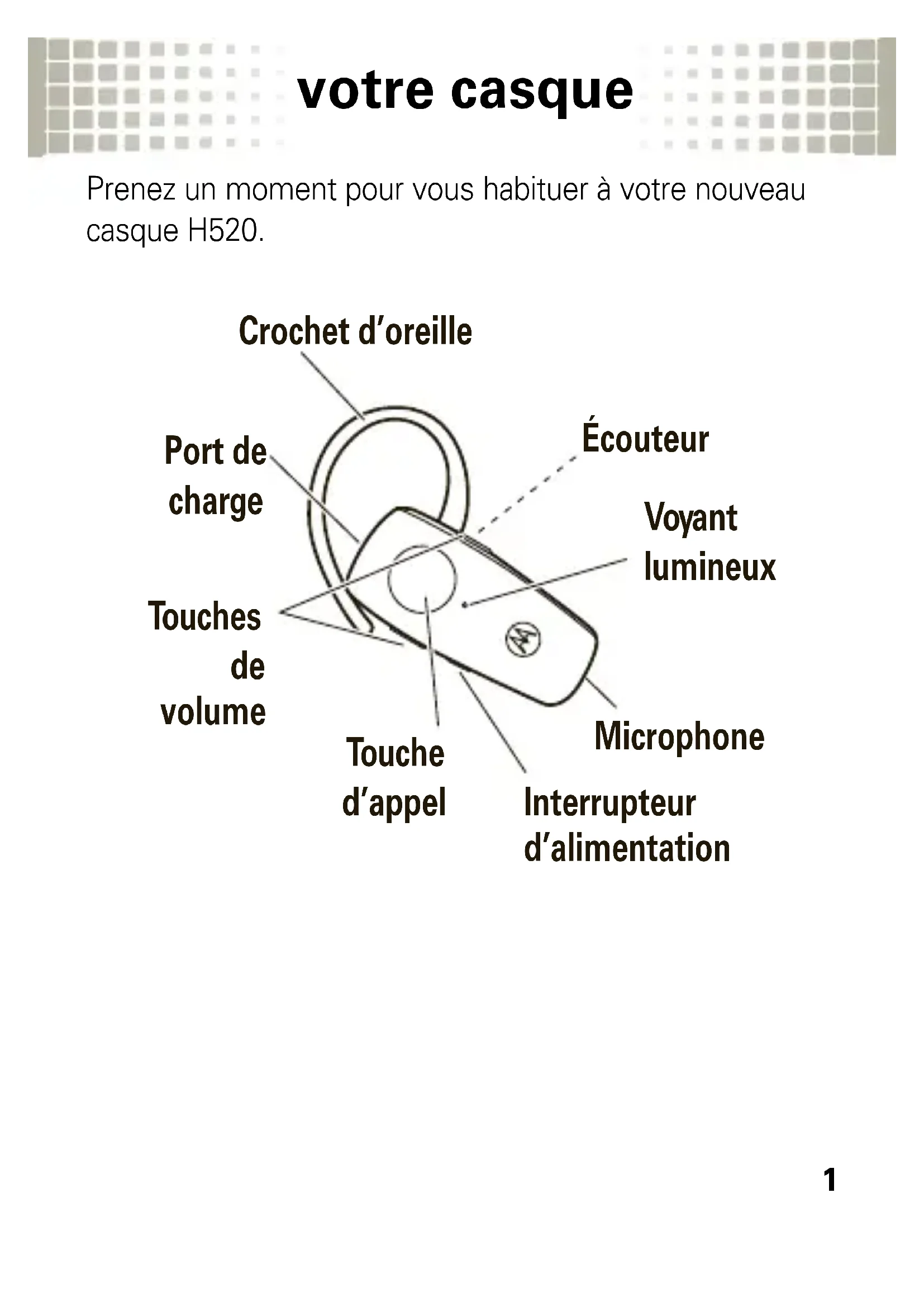 H520 - Casque MOTOROLA - Notice d'utilisation et mode d'emploi gratuit