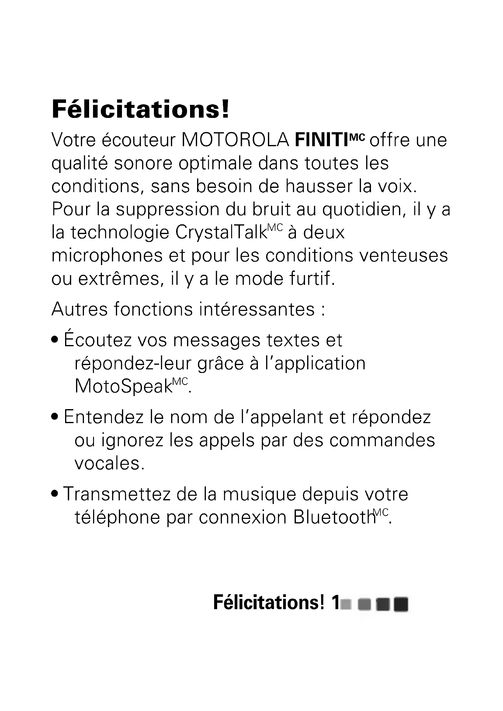 Finiti - Casque MOTOROLA - Notice d'utilisation et mode d'emploi gratuit