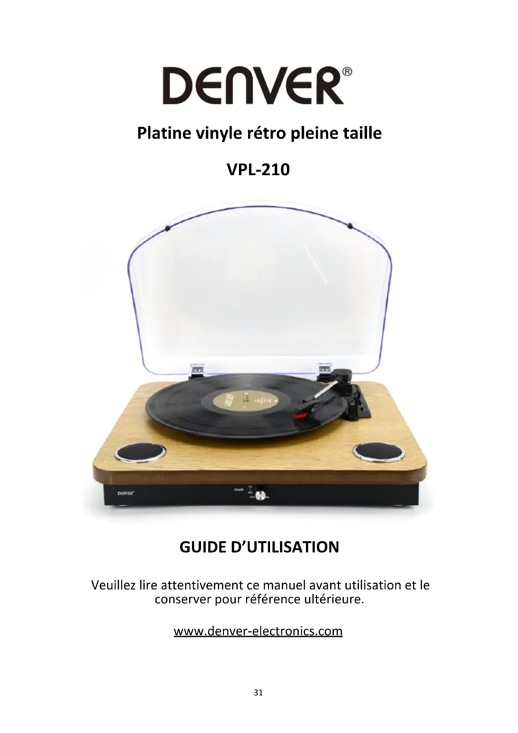 VPL210WOOD - Platine_disque DENVER - Notice d'utilisation et mode d'emploi gratuit