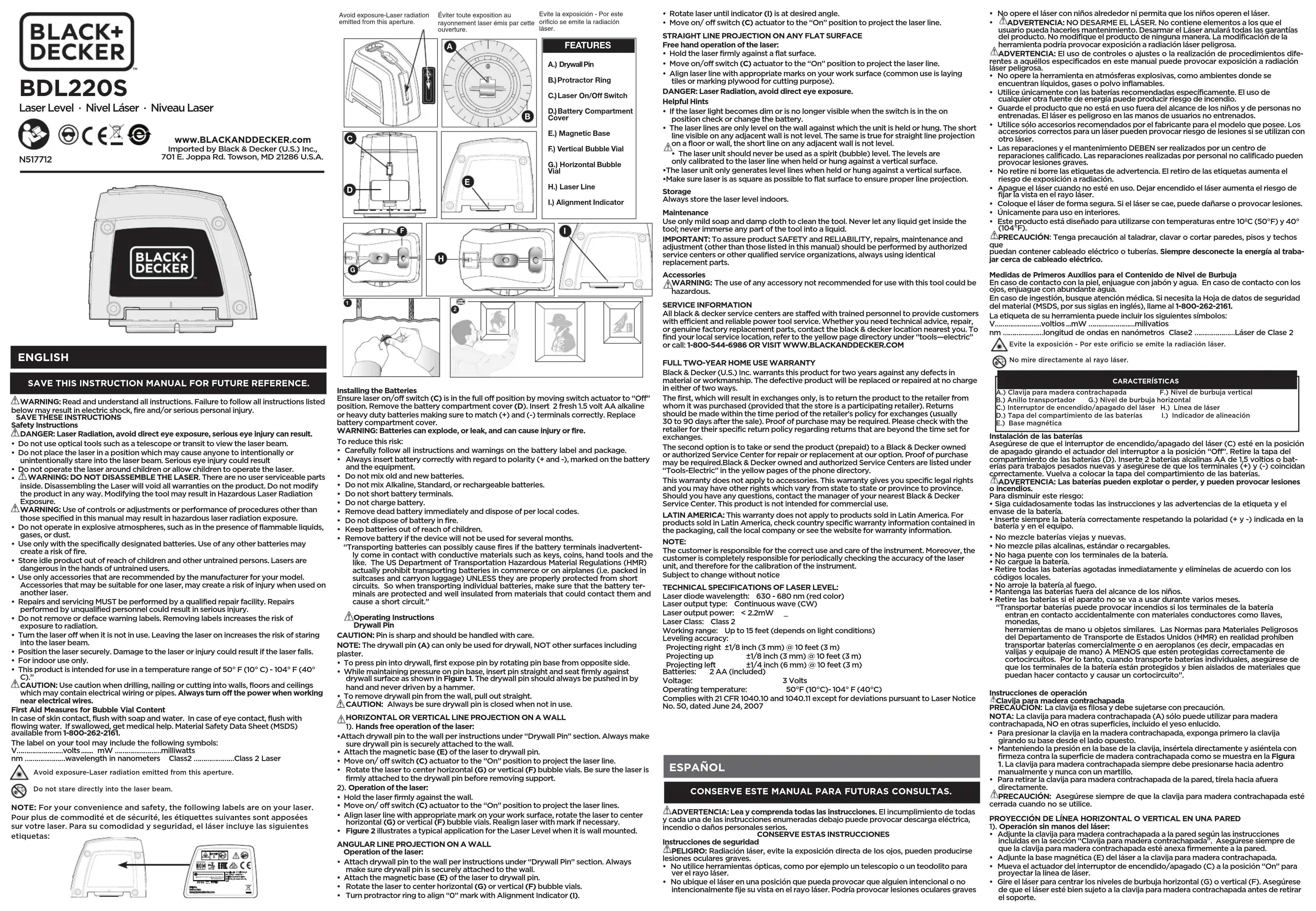 BDL220S - Pointeur laser BLACK & DECKER - Notice d'utilisation et mode d'emploi gratuit