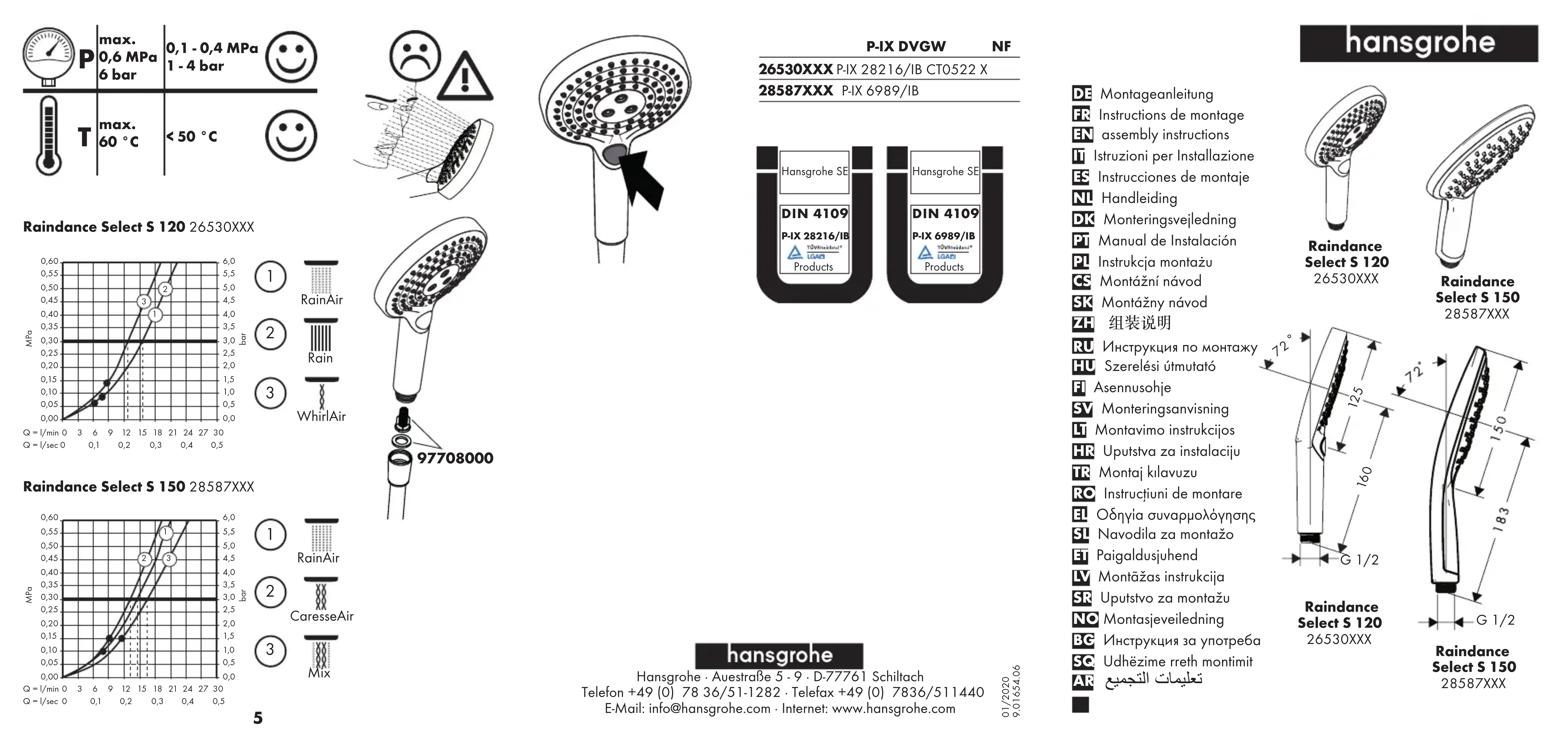 Retrouvez gratuitement la notice de l'appareil Raindance Select S 150 Hansgrohe au format PDF.