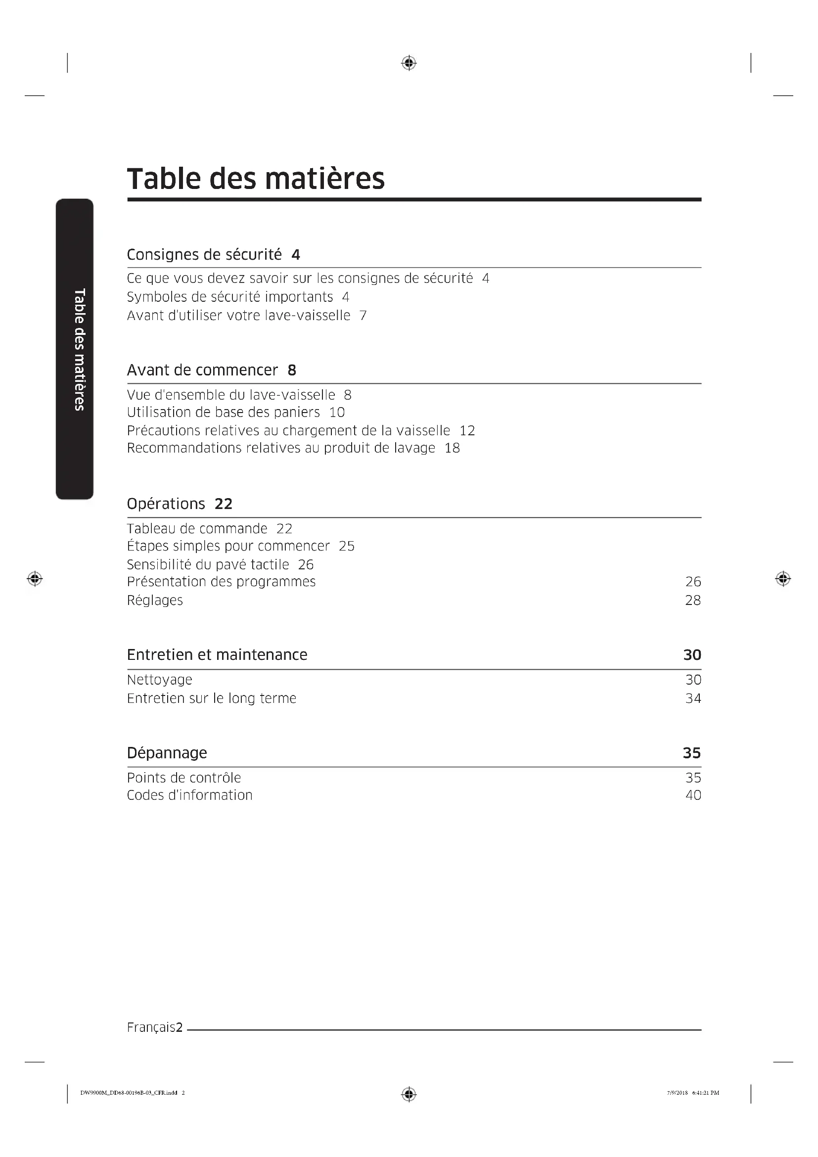 - Ce lave-vaisselle est prévu pour une utilisation privée uniquement. DW9900M_DD68-00196B-03_CFR.indd 6 7/9/2018 6:41:22 PMConsignes de sécurité Français 7