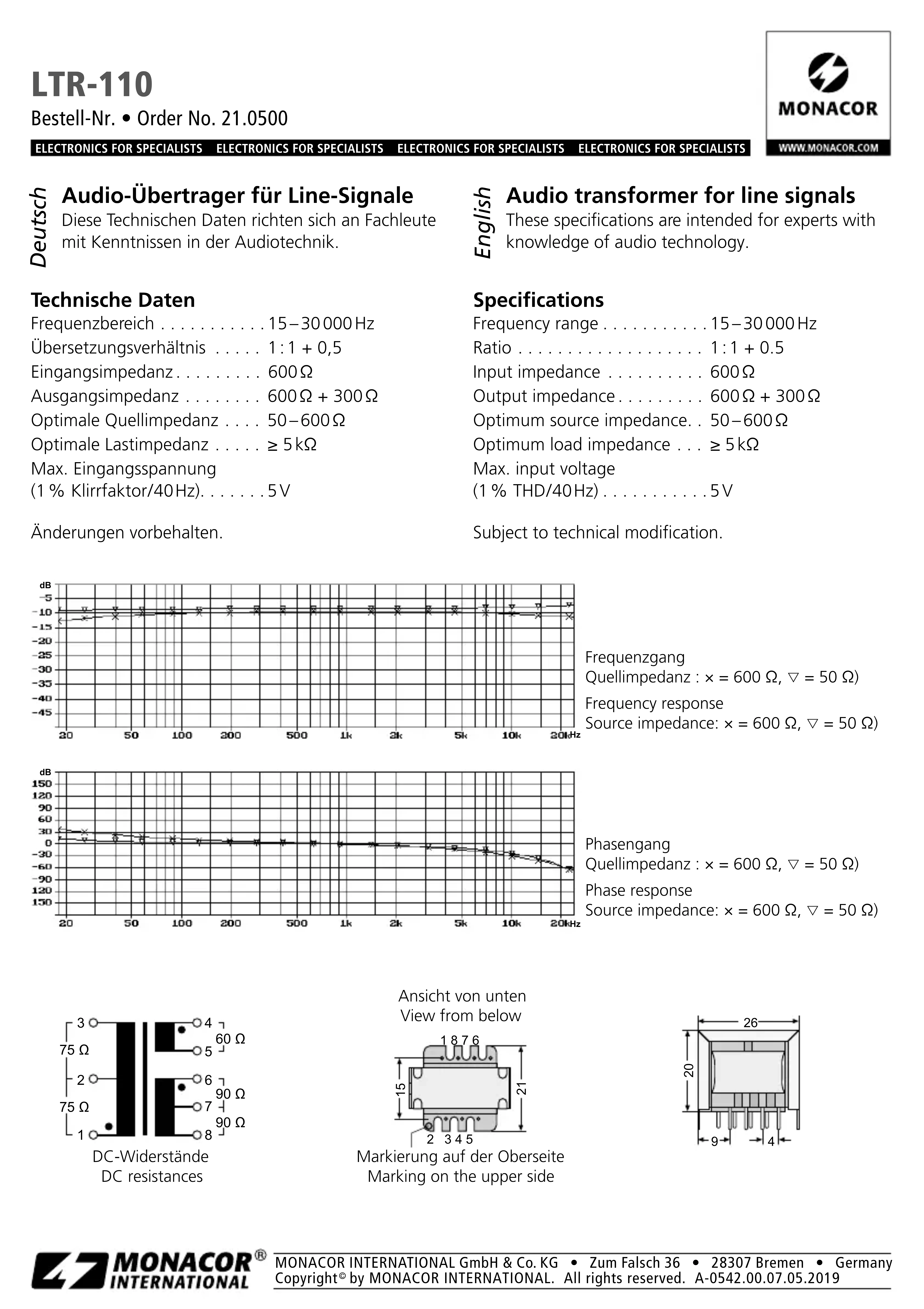 LTR110 - Convertisseur audio/vidéo Monacor - Notice d'utilisation et mode d'emploi gratuit