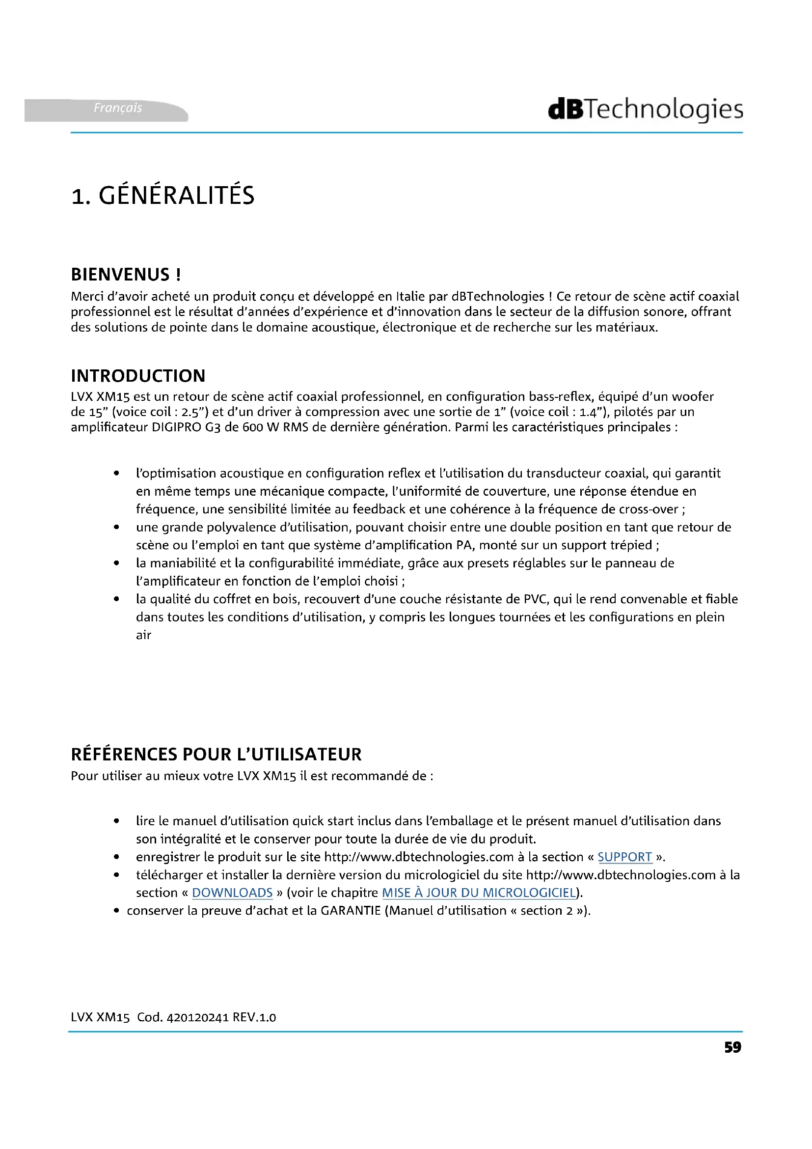 MODE D'EMPLOI LVX XM 15 DB Technologies
