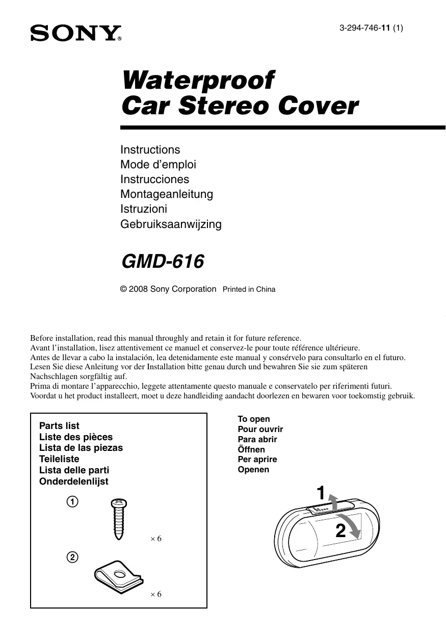 Téléchargez la notice de votre Accessoire audio pour voiture au format PDF gratuitement ! Retrouvez votre notice GMD-616 - SONY et reprennez votre appareil électronique en main. Sur cette page sont publiés tous les documents nécessaires à l'utilisation de votre appareil GMD-616 de la marque SONY.
