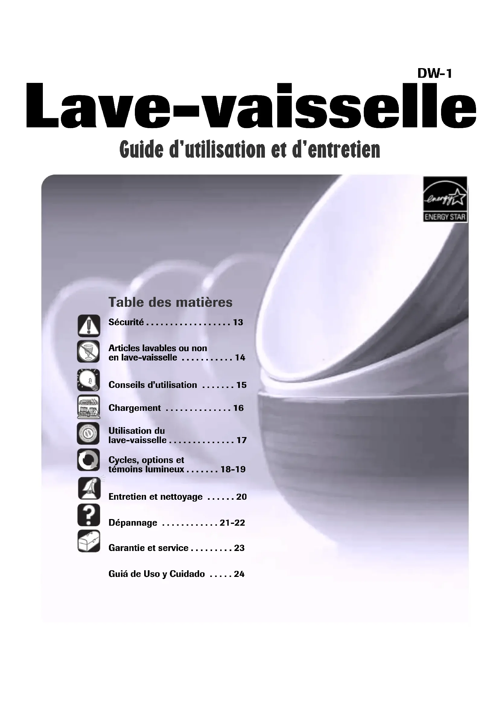 - Lave-vaisselle Table des matières Sécurité p. 13