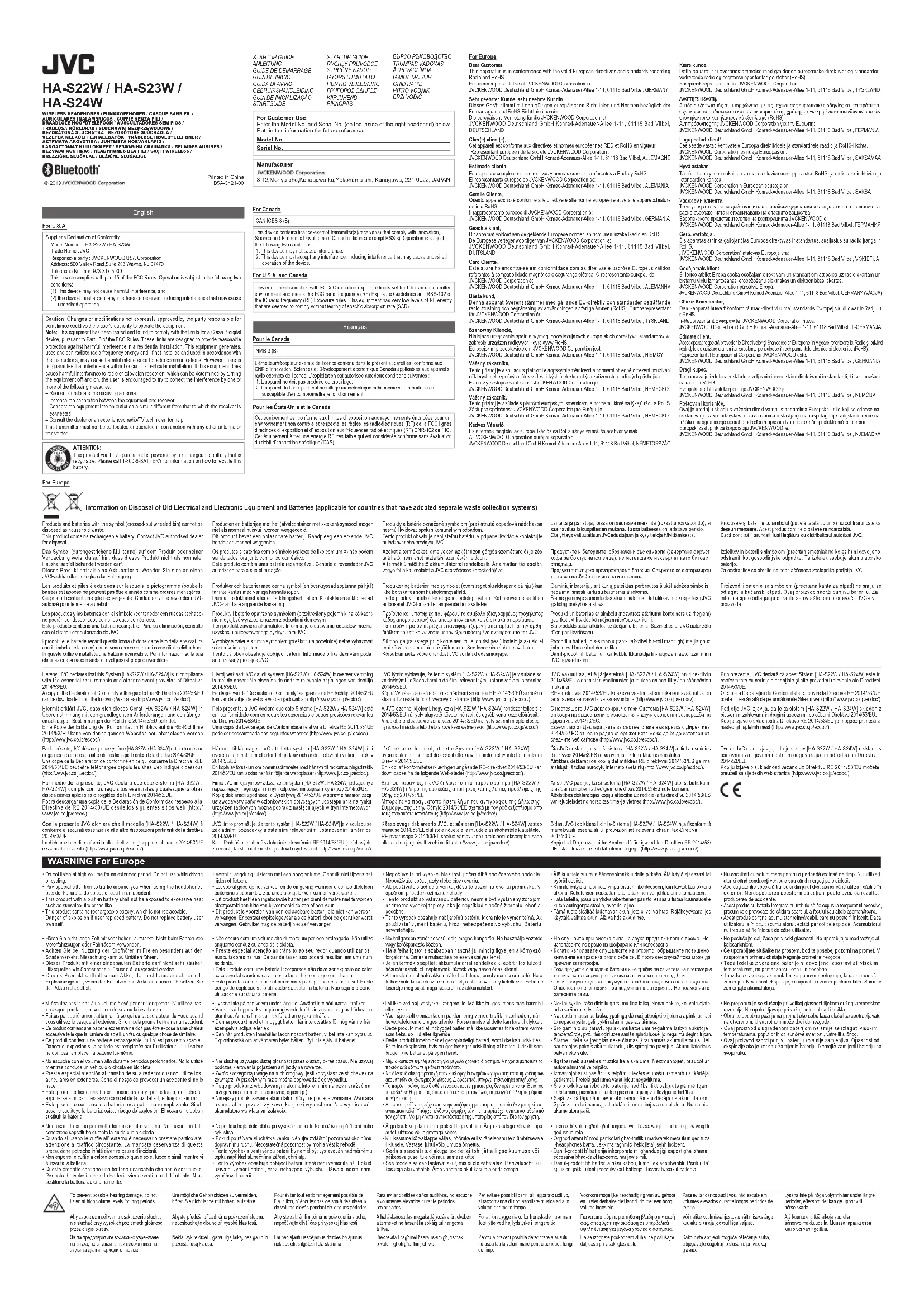 HAS23W - Casque JVC - Notice d'utilisation et mode d'emploi gratuit