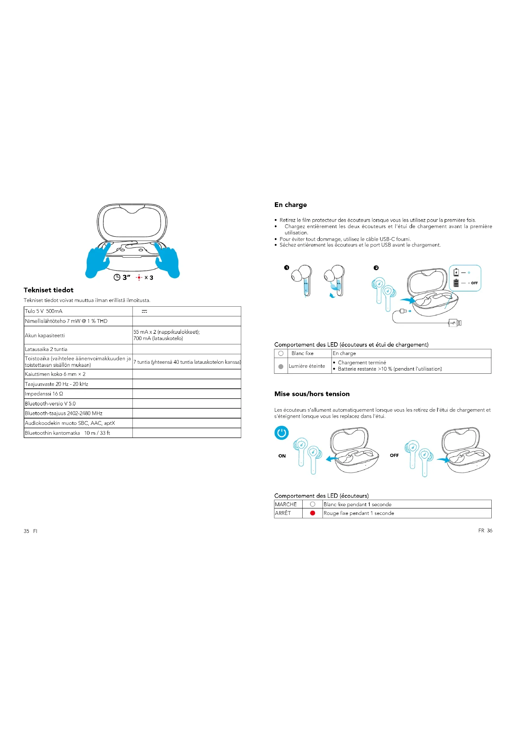 OFF Comportement des LED (écouteurs) MARCHE Blanc xe pendant 1 seconde ARRÊT Rouge xe pendant 1 seconde37 FR FR 38