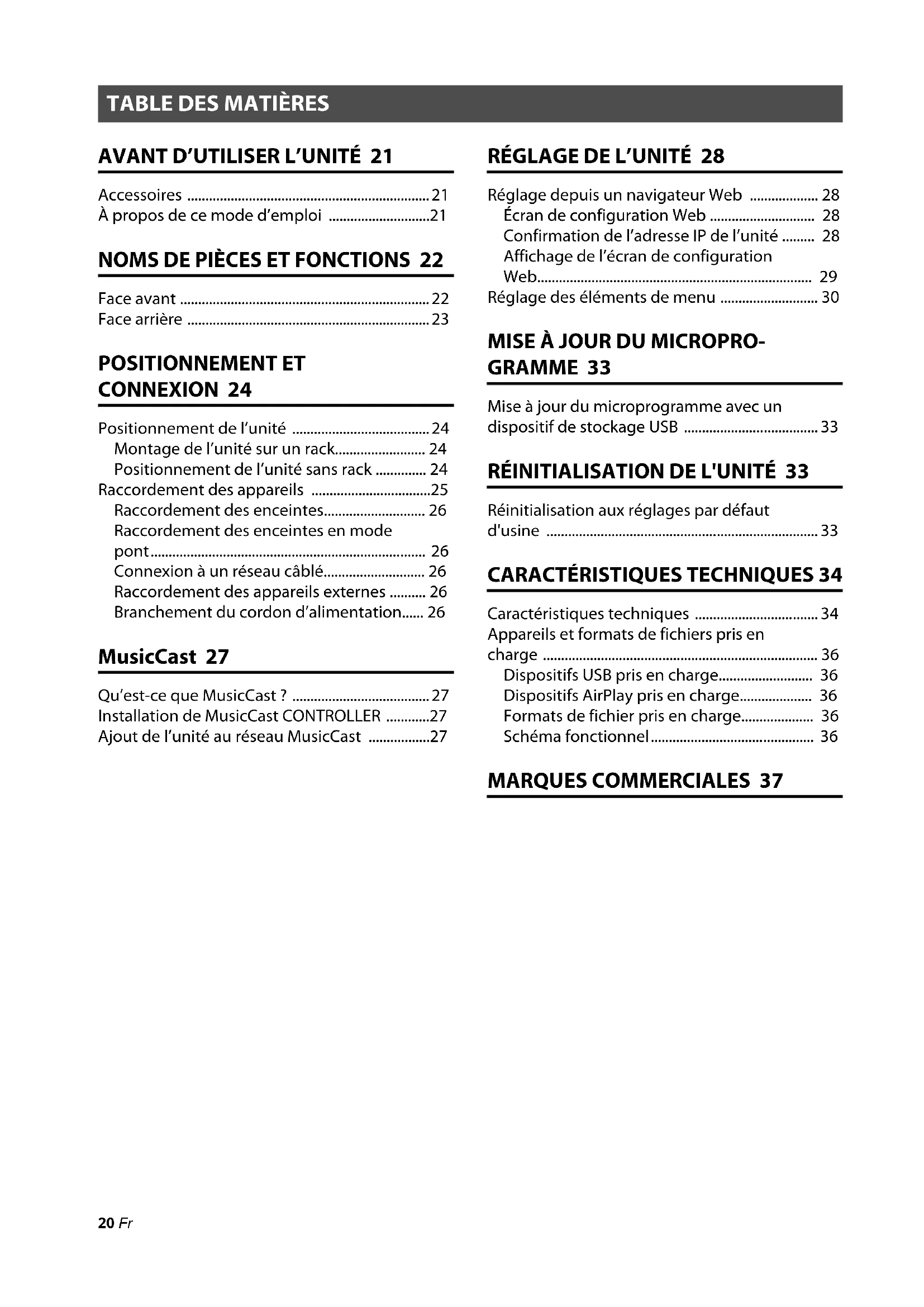 - MusicCast 27 Qu’est-ce que MusicCast ? p. 27