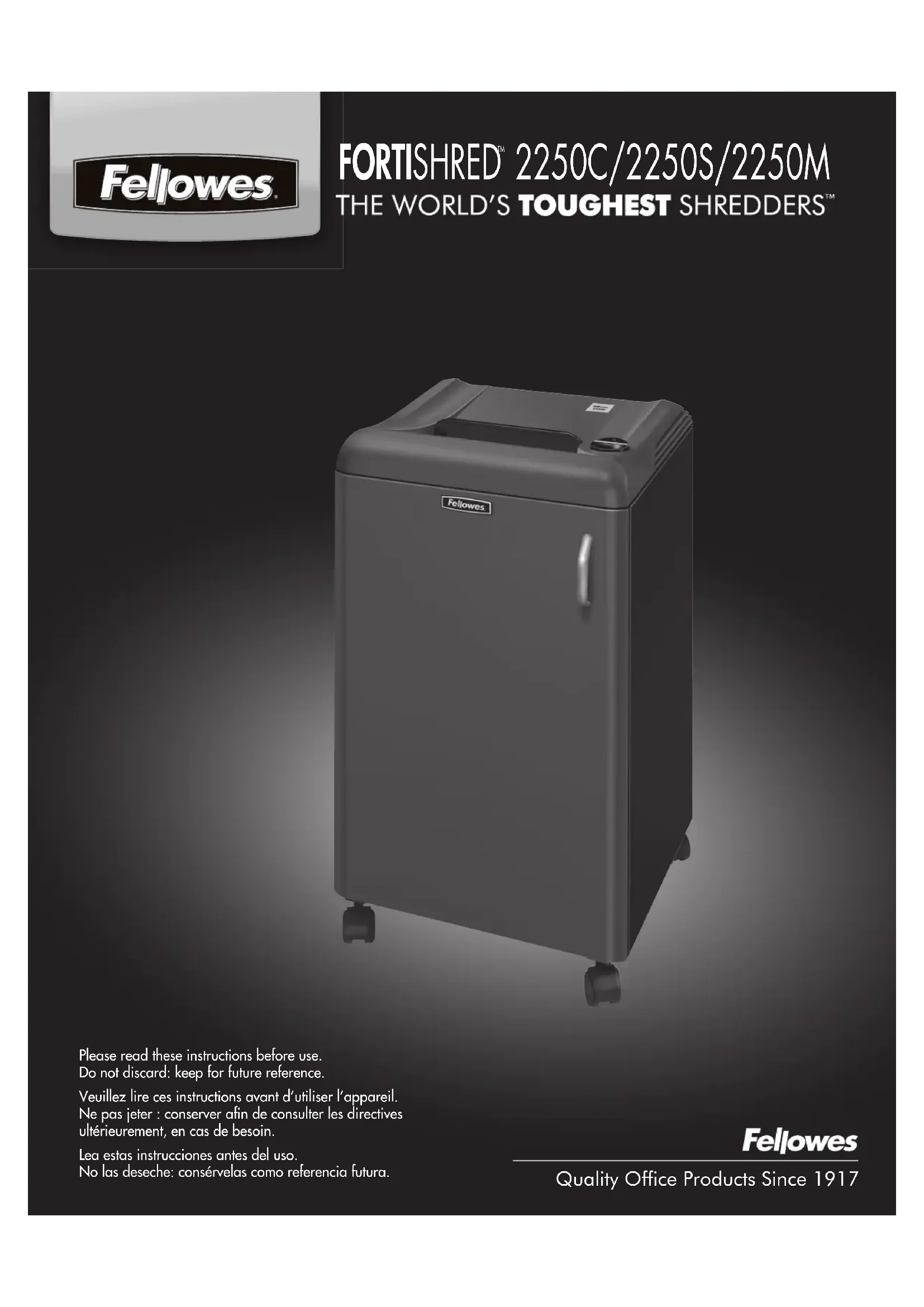 Retrouvez gratuitement la notice de l'appareil Fortishred 2250C FELLOWES au format PDF.
