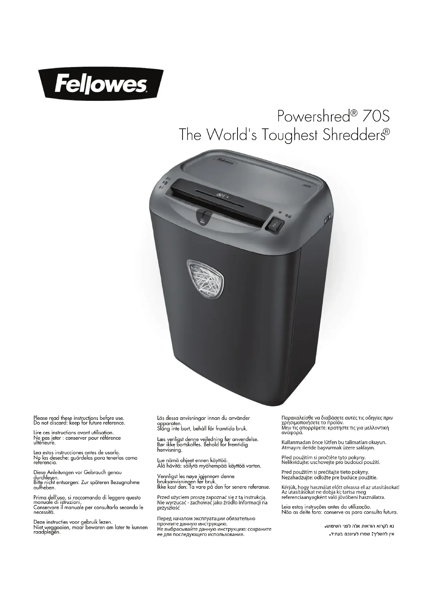 Retrouvez gratuitement la notice de l'appareil Powershred 70S FELLOWES au format PDF.