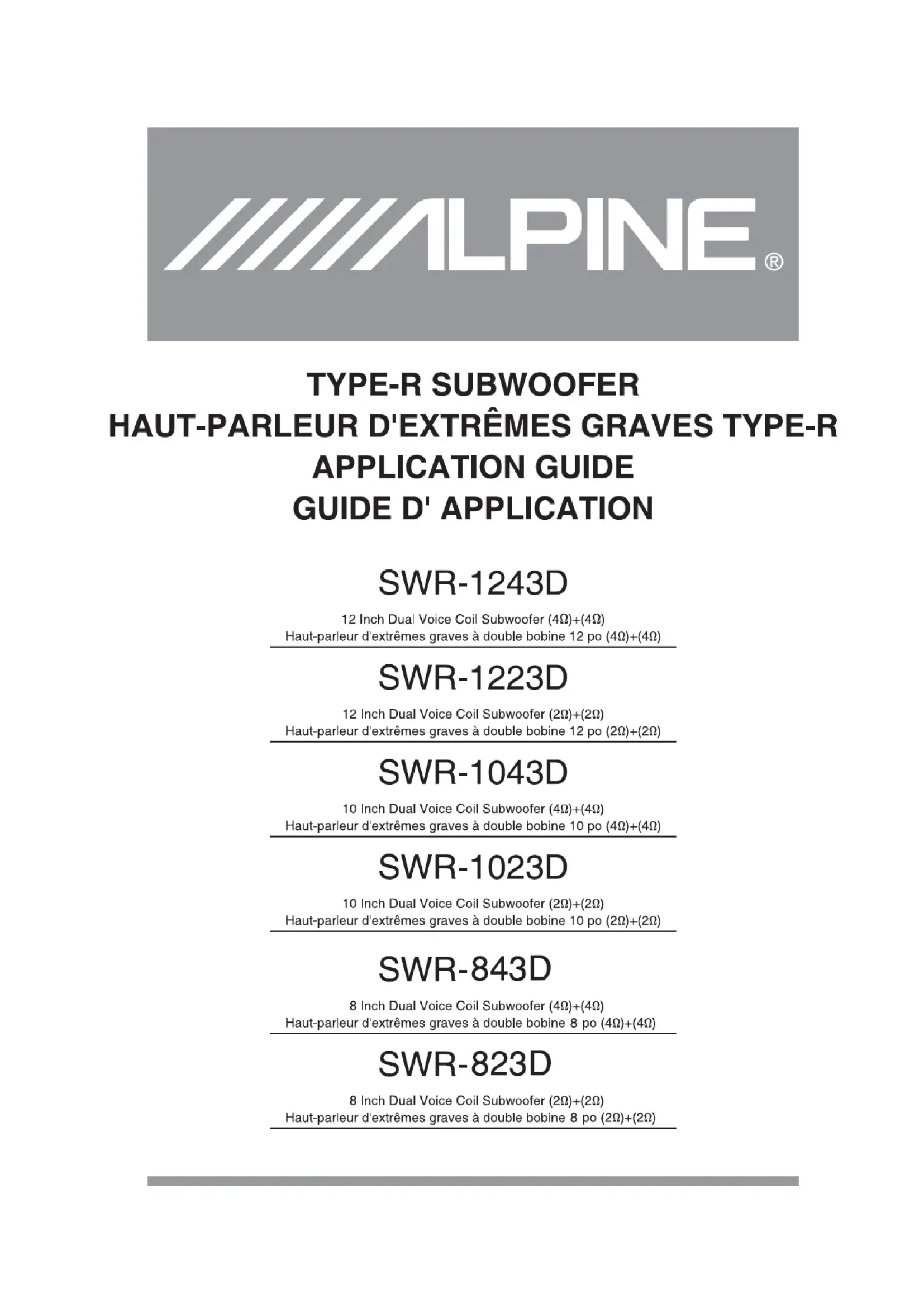 SWR823D - Caisson de basses ALPINE - Notice d'utilisation et mode d'emploi gratuit