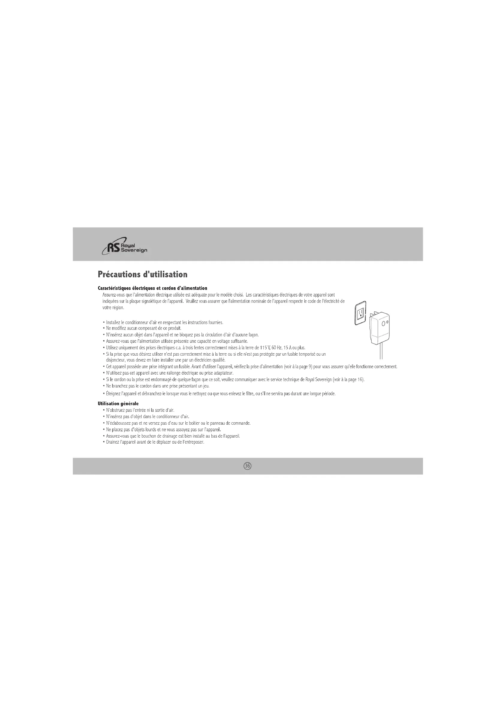 - Si le cordon ou la prise est endommagé de quelque façon que ce soit, veuillez communiquer avec le service technique de Royal Sovereign (voir à la page 16).
