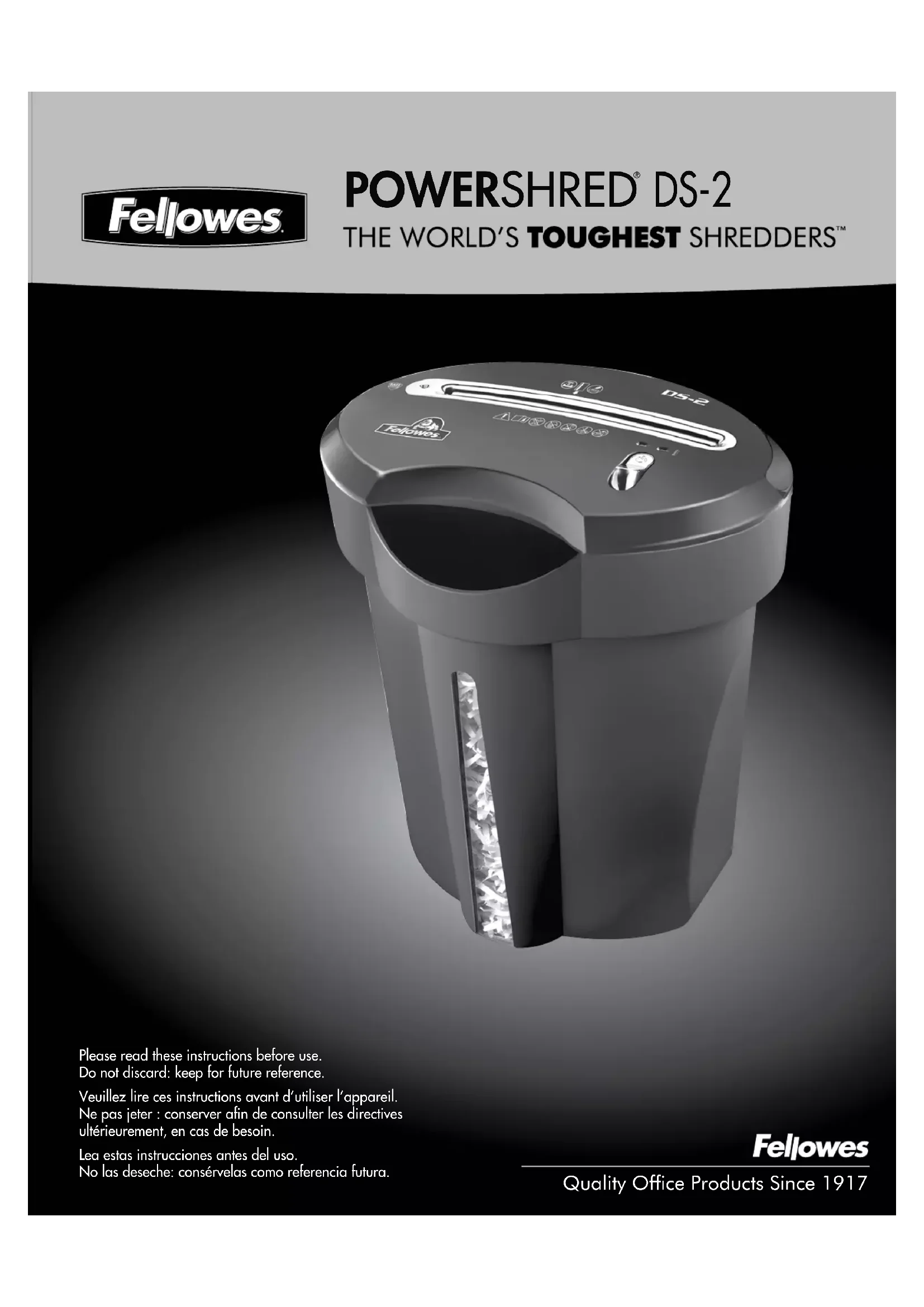 Retrouvez gratuitement la notice de l'appareil Powershred DS2 FELLOWES au format PDF.