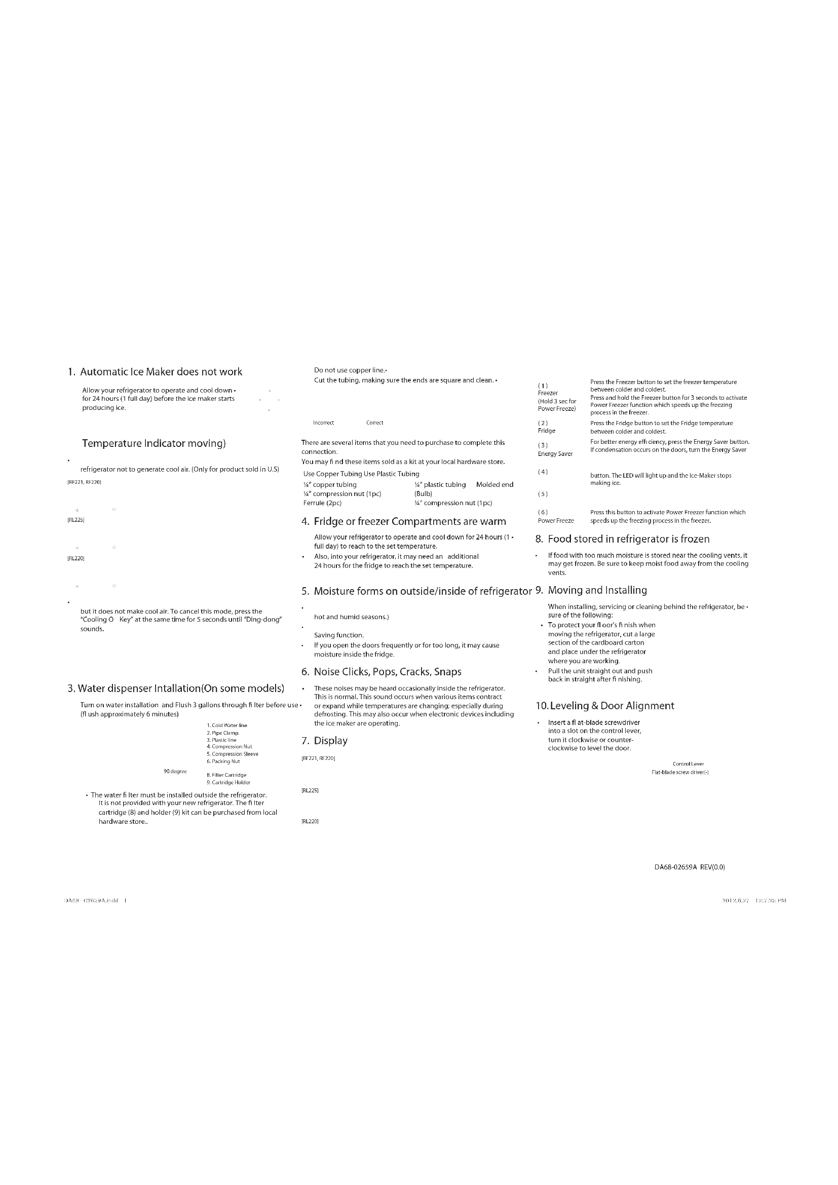 Control LeverFlat-blade screw driver(-)DA68-02659A.indd 1 2012.6.27 12:7:25 PM1. La machine à glaçons automatique ne fonctionne pas Laissez le réfrigérateur fonctionner et se refroidir pendant • 24 heures (un jour entier) avant que la machine à glaçons ne produise de la glace.