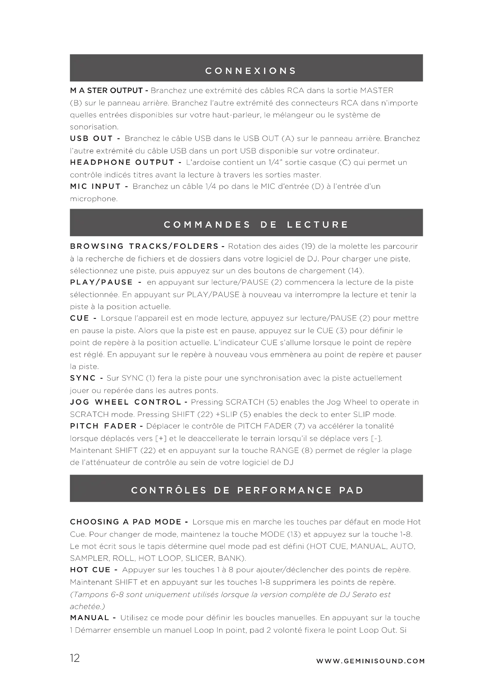 SLATE 4 - Equipement DJ GEMINI - Notice d'utilisation et mode d'emploi gratuit