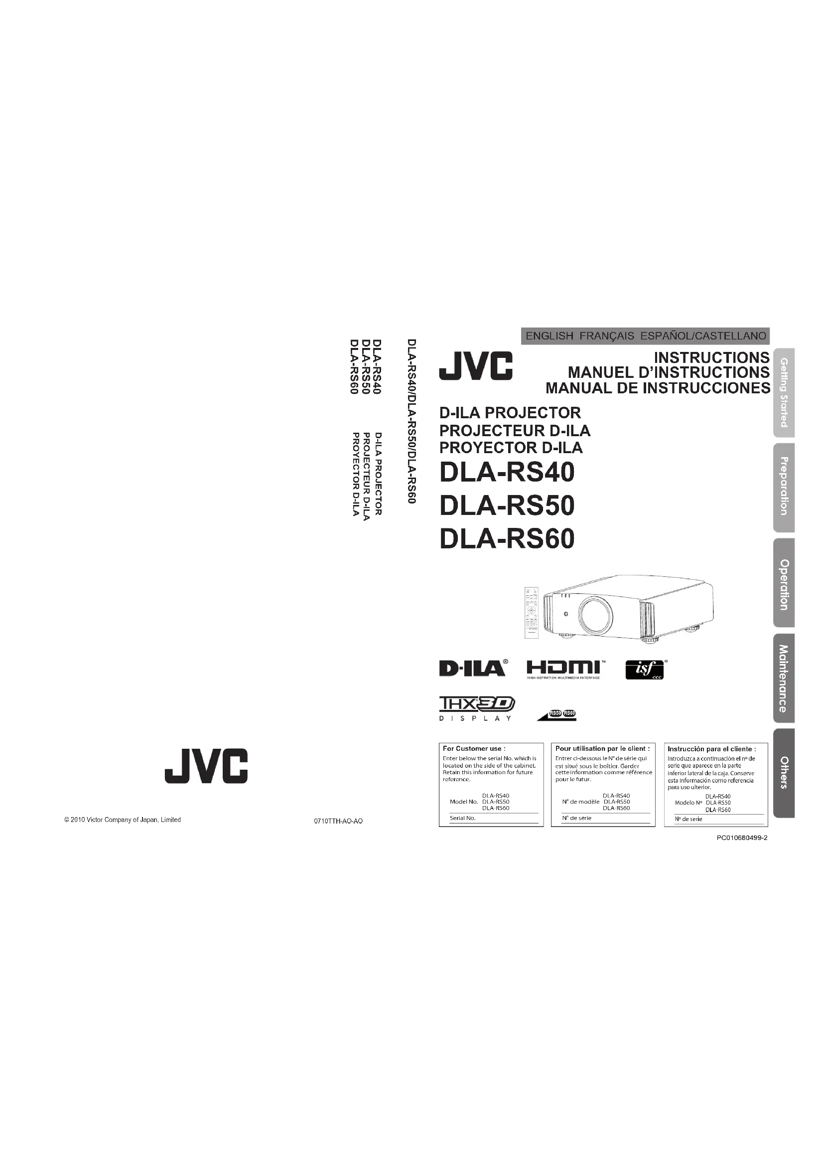 DLARS60U3D - Projecteur JVC - Notice d'utilisation et mode d'emploi gratuit