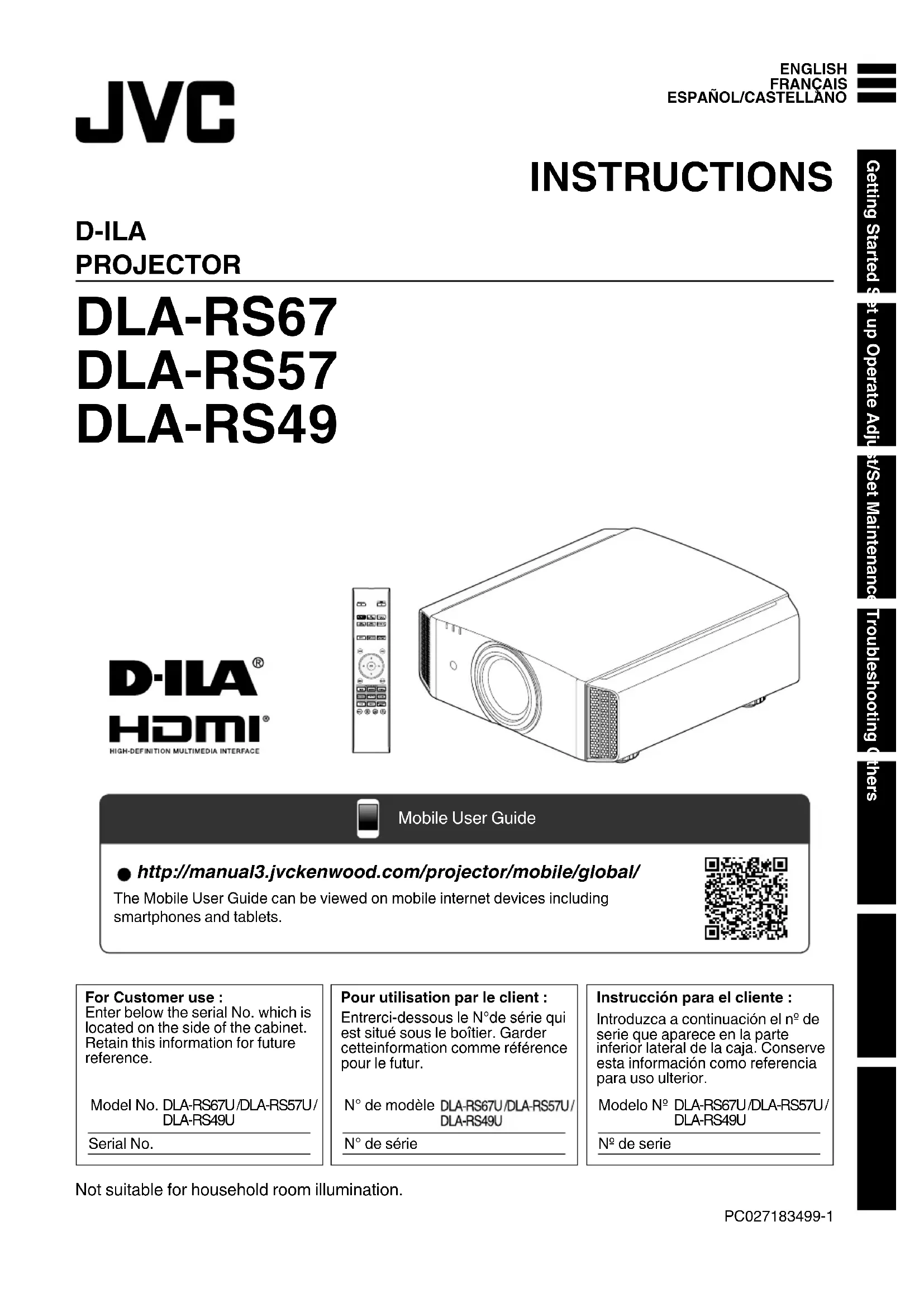 DLARS49U - Projecteur JVC - Notice d'utilisation et mode d'emploi gratuit