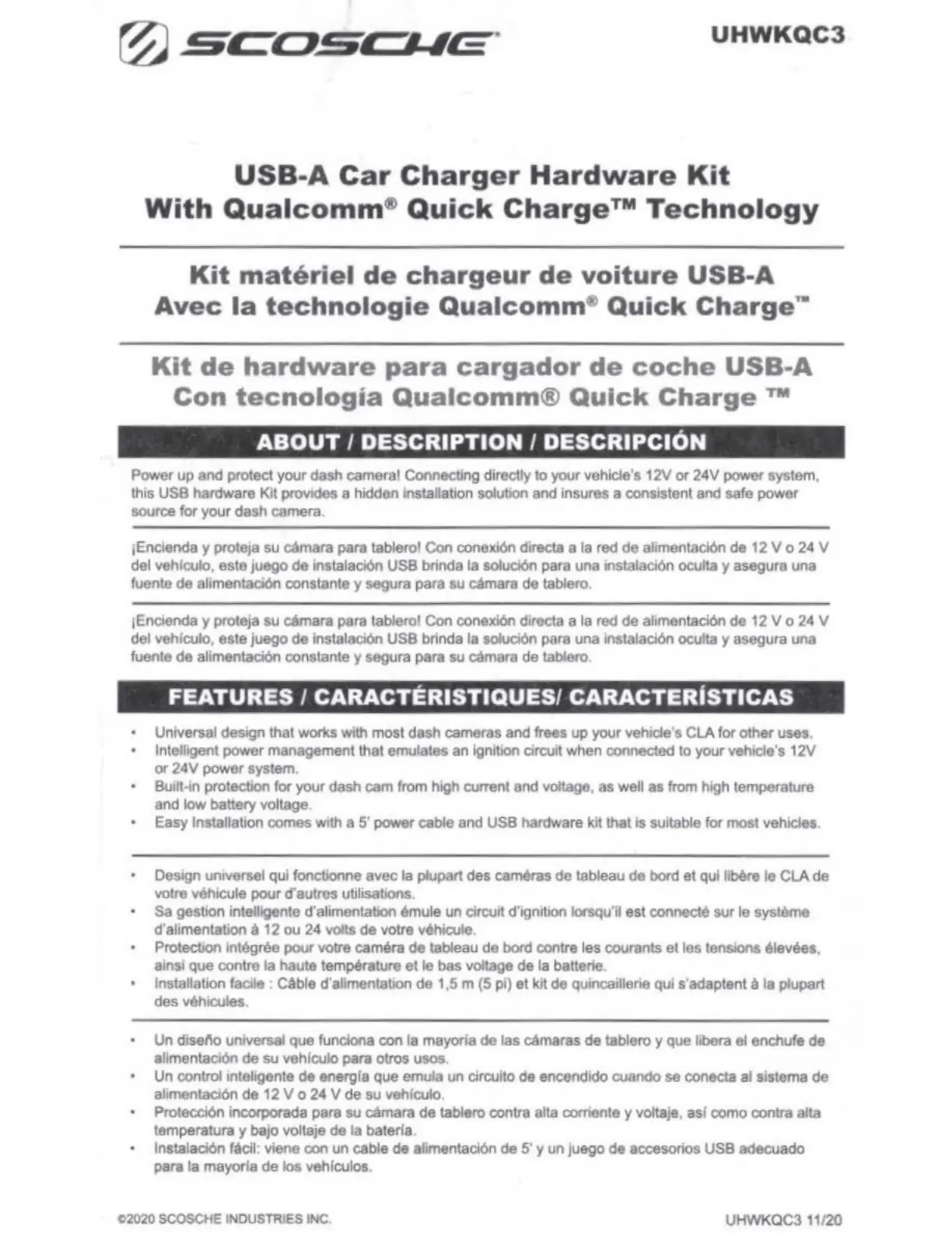Retrouvez gratuitement la notice de l'appareil UHWKQC3SP Scosche au format PDF.