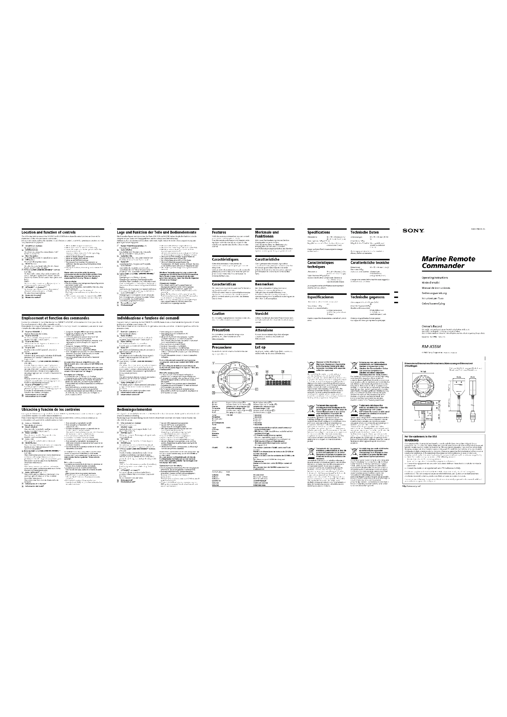 RMX55M - Télécommande SONY - Notice d'utilisation et mode d'emploi gratuit