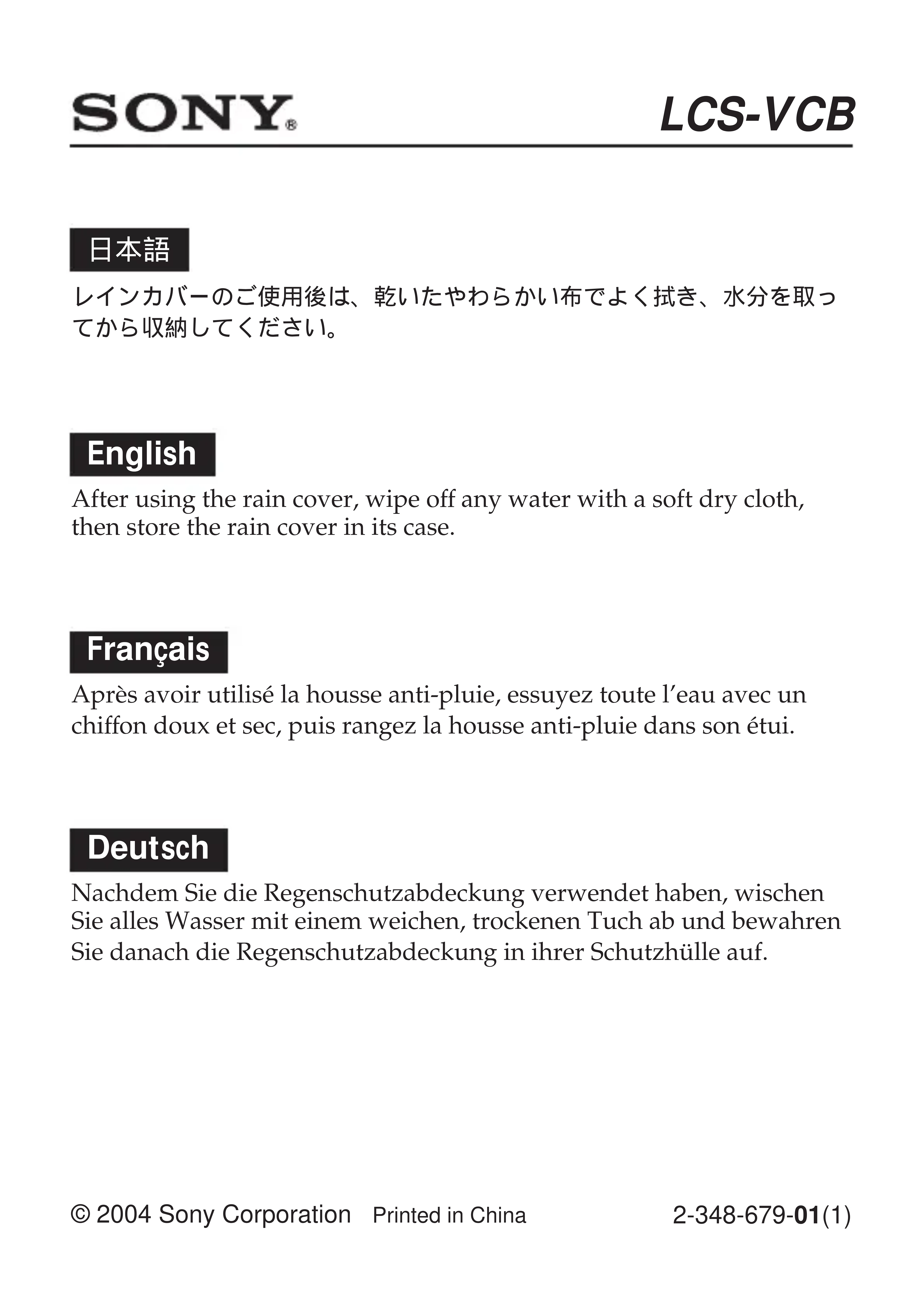 Téléchargez la notice de votre Autres accessoires pour appareil photo au format PDF gratuitement ! Retrouvez votre notice LCSVCB - SONY et reprennez votre appareil électronique en main. Sur cette page sont publiés tous les documents nécessaires à l'utilisation de votre appareil LCSVCB de la marque SONY.