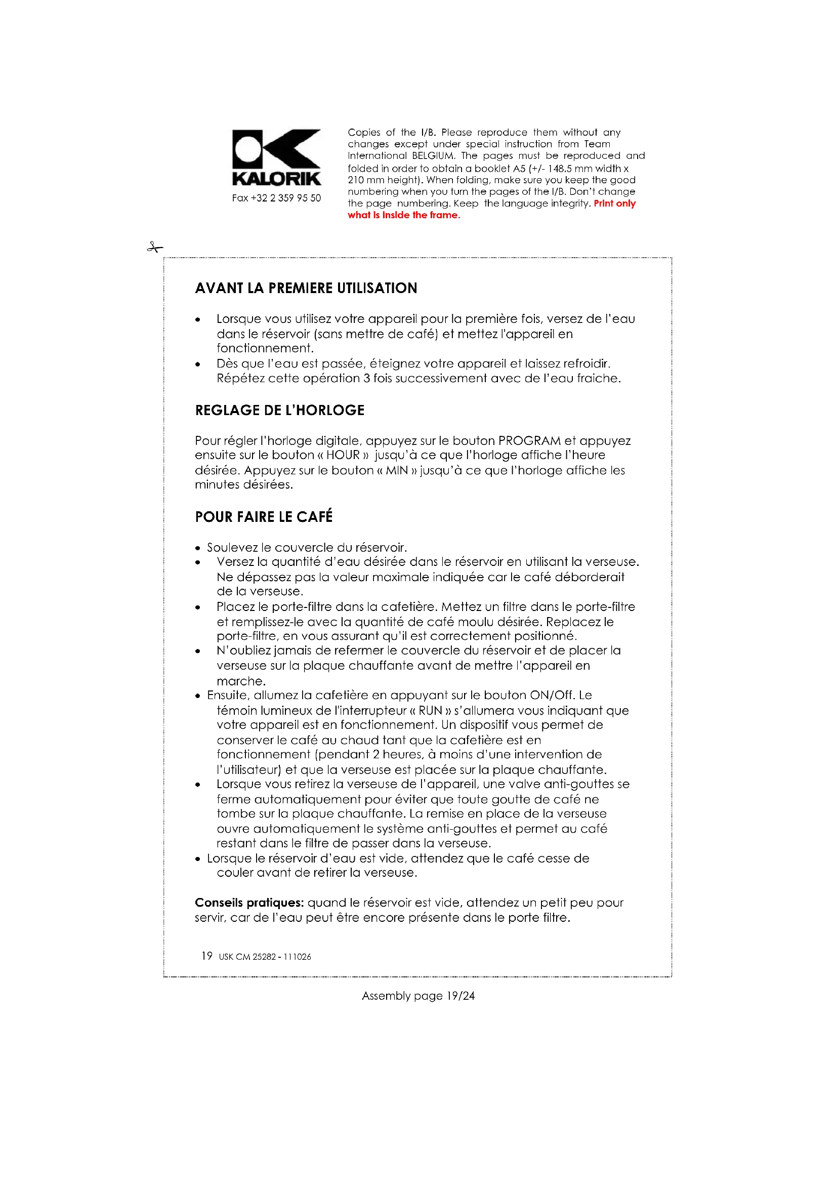 MODE D'EMPLOI CM 38933 SS KALORIK