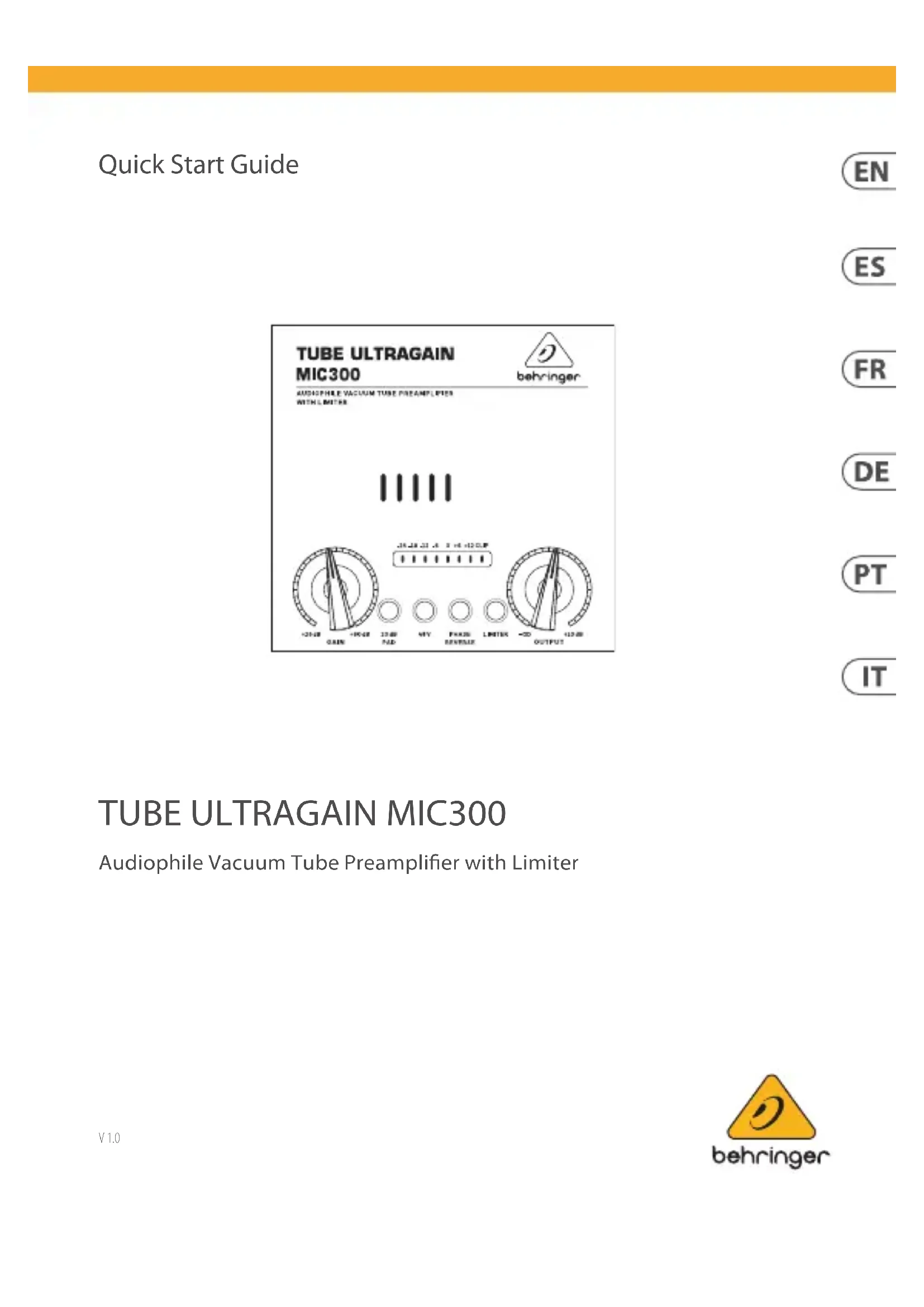 Retrouvez gratuitement la notice de l'appareil Tube Ultragain MIC300 BEHRINGER au format PDF.