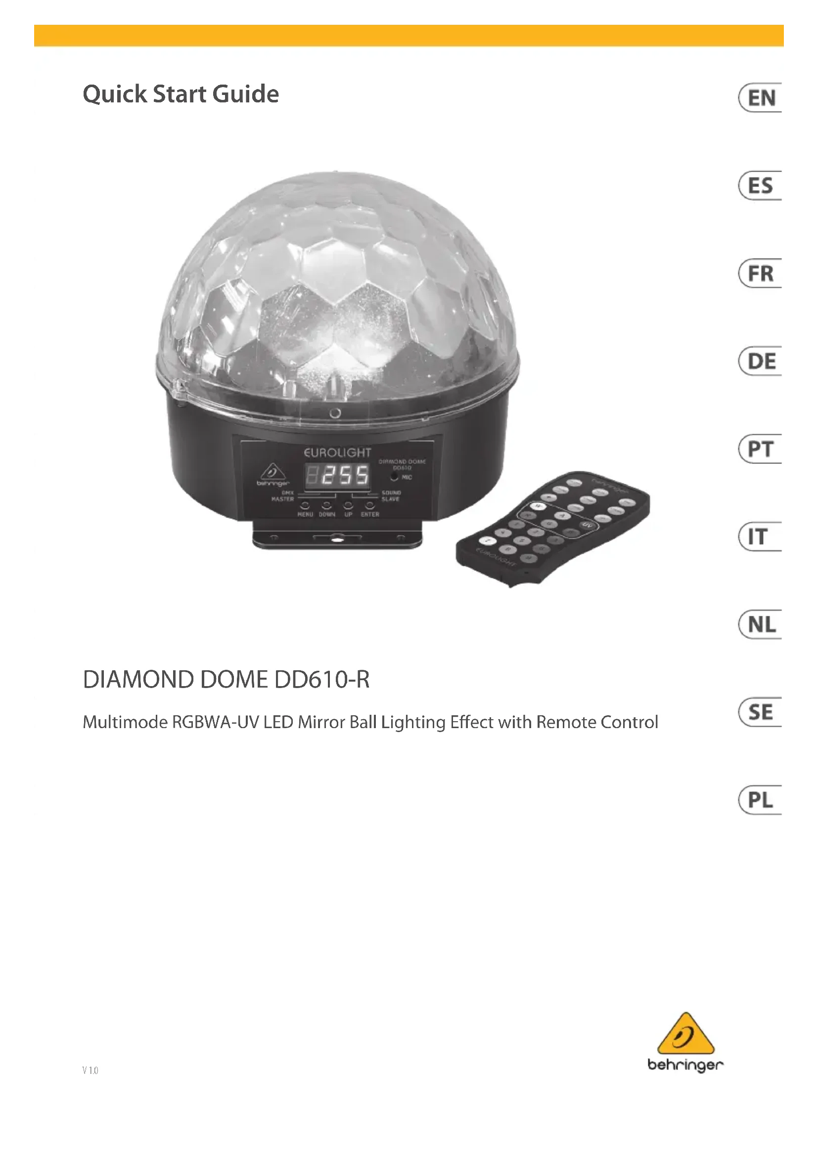 Diamond Dome DD610R - Éclairage BEHRINGER - Notice d'utilisation et mode d'emploi gratuit