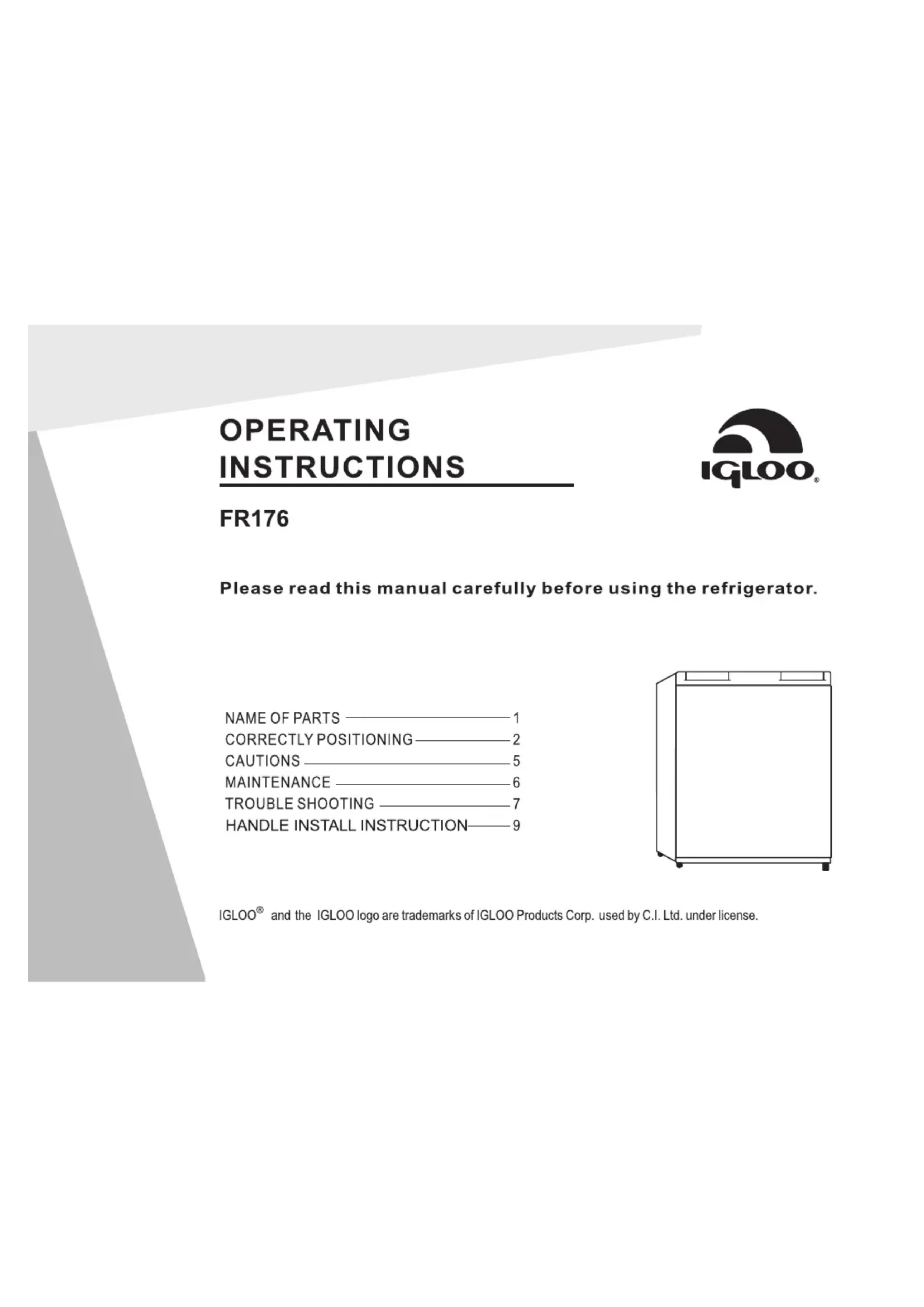 FR176 - Réfrigérateur Igloo - Notice d'utilisation et mode d'emploi gratuit