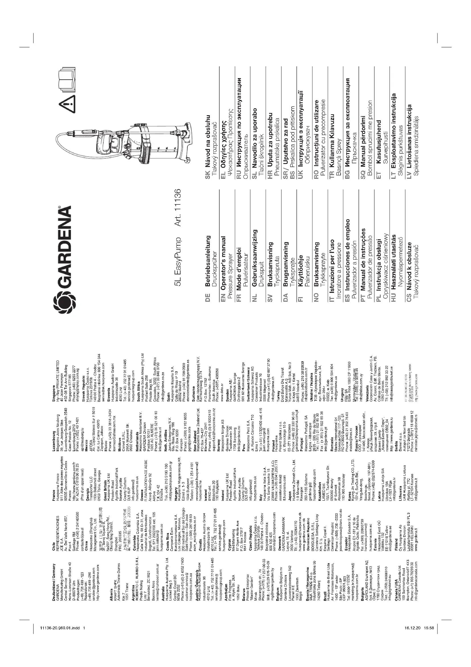 Retrouvez gratuitement la notice de l'appareil 5L EasyPump GARDENA au format PDF.