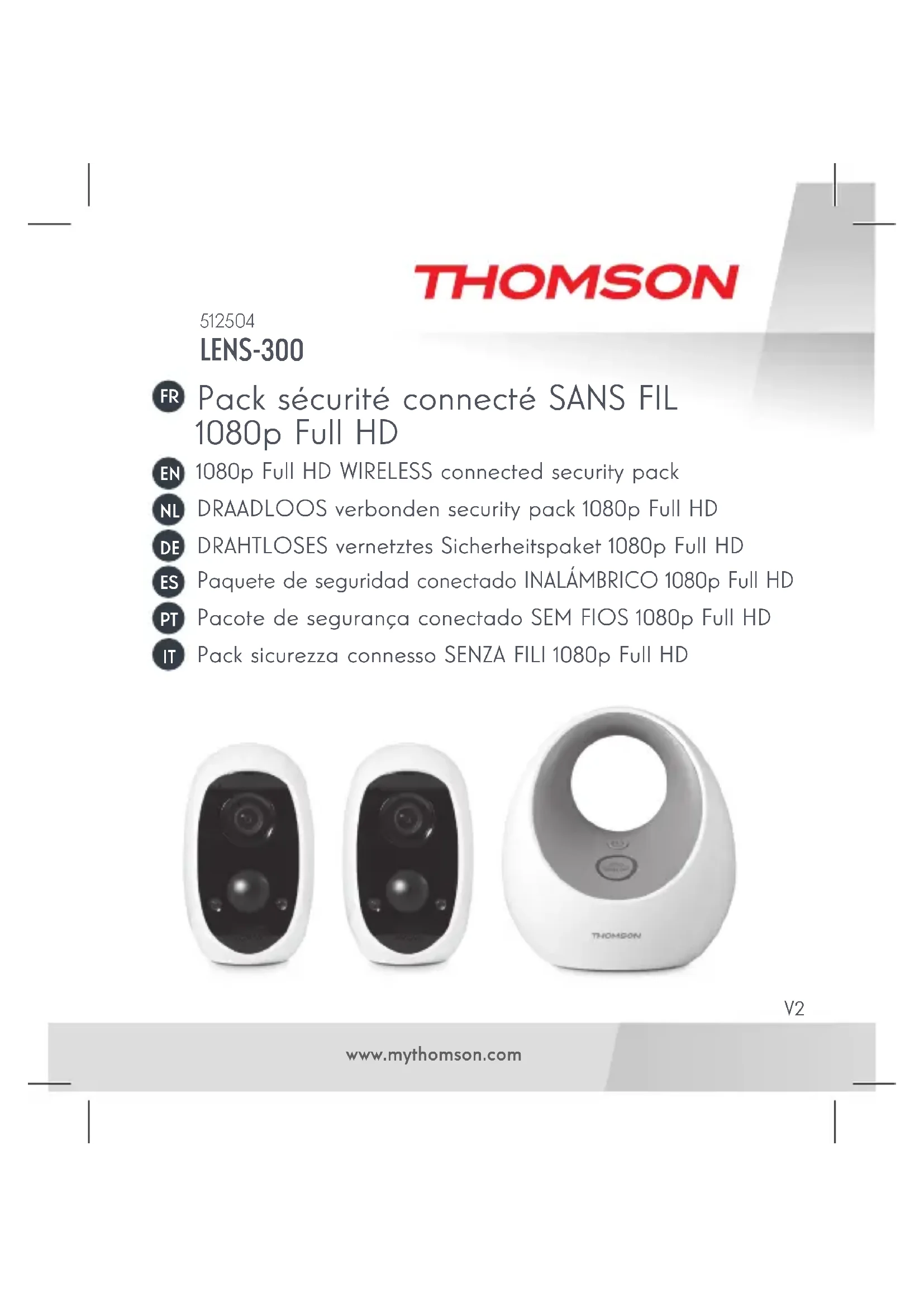 La notice complète de votre pack sécurité connecté est disponible sur le site www.mythomson.com. Téléchargez cette notice pour plus de détails sur la mise en service et l’utilisation de votre pack sécurité connecté Thomson.