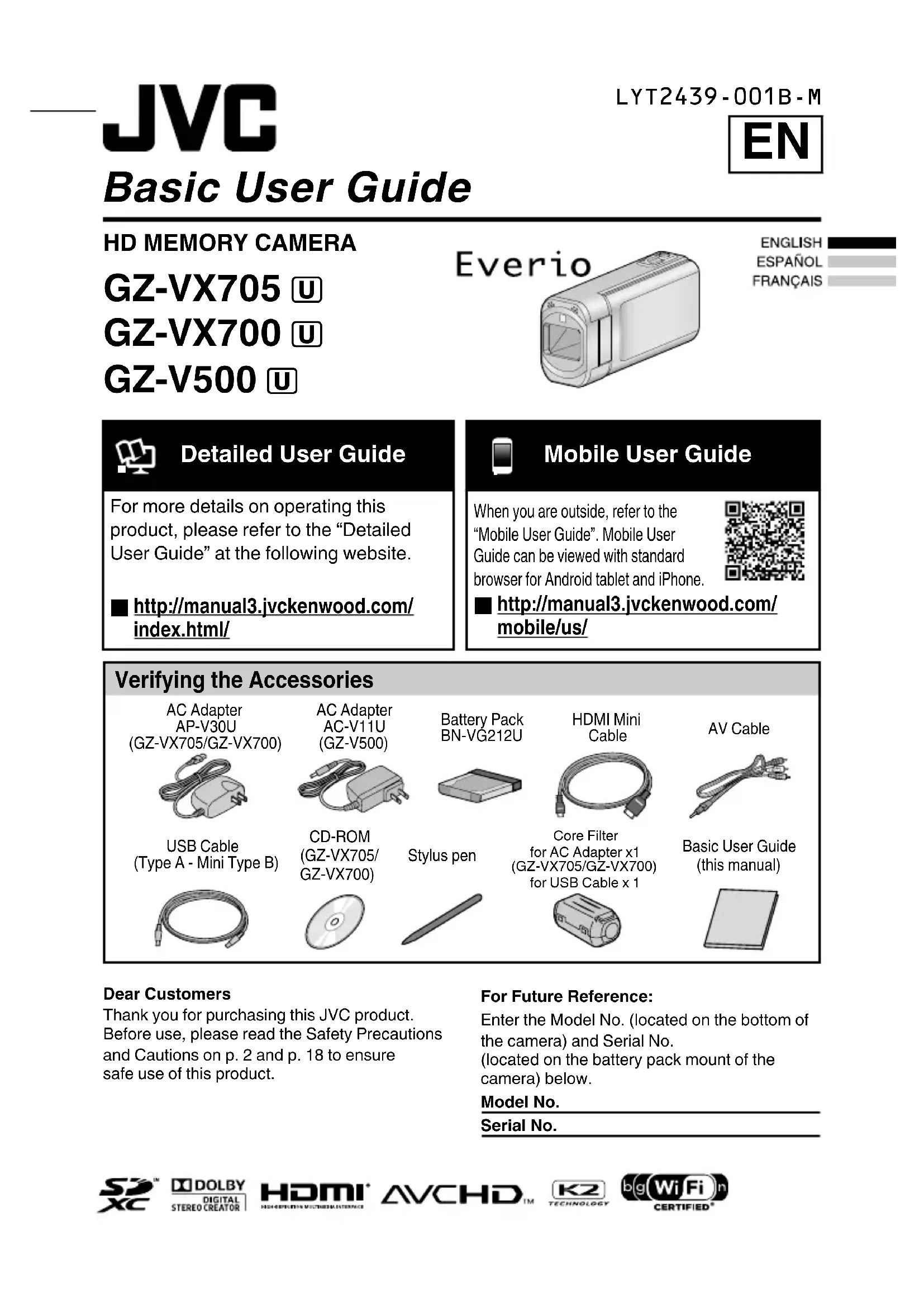 Retrouvez gratuitement la notice de l'appareil Everio GZV500BUS JVC au format PDF.