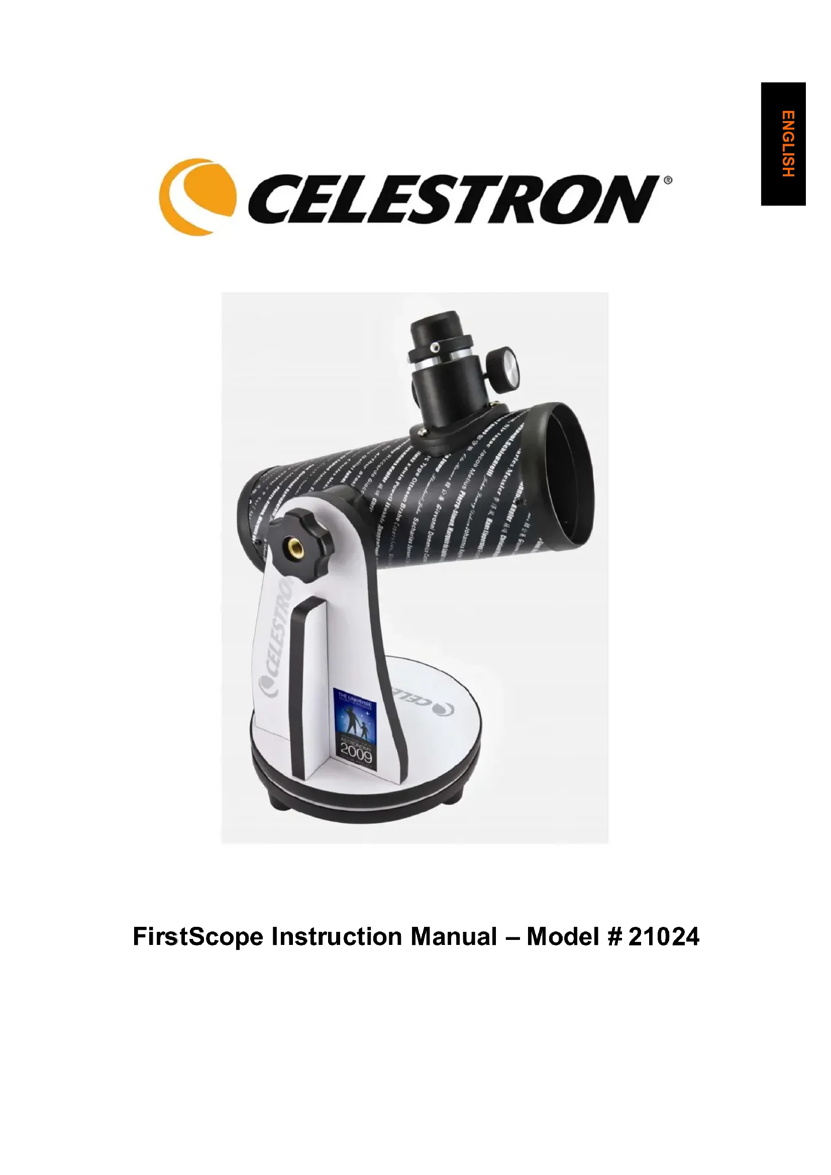 Ce télescope a été spécialement conçu pour qu’un utilisateur novice puisse bénéficier d’un produit exceptionnel. En plus de son design compact et portable, le FirstScope assure une performance optique de qualité destinée à encourager tout nouvel arrivant dans l'univers des astronomes amateurs. En outre, votre télescope FirstScope convient parfaitement aux observations de sites terrestres grâce à son étonnante puissance d’observation. Il suffit de sélectionner l’objet, de viser, de pointer et d’effectuer la mise au point. Le télescope FirstScope bénéficie d’une garantie limitée de deux ans. Pour de plus amples informations, consultez notre site web sur www.celestron.com
