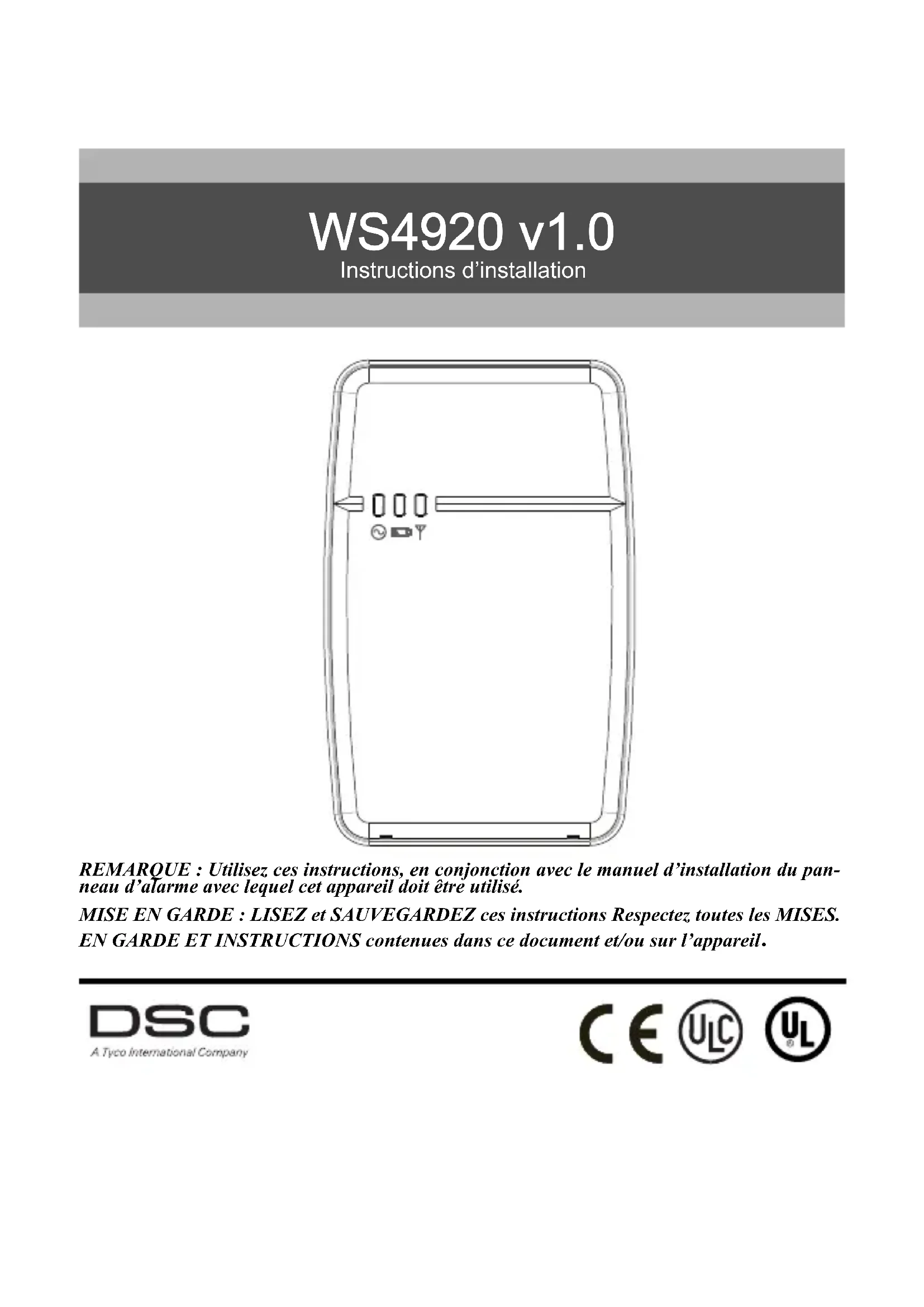 MODE D'EMPLOI WS4920 DSC