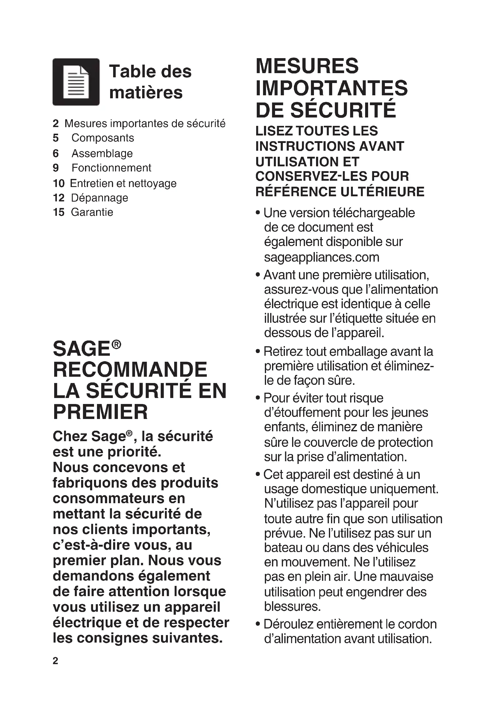 - Une version téléchargeable de ce document est également disponible sur sageappliances.com