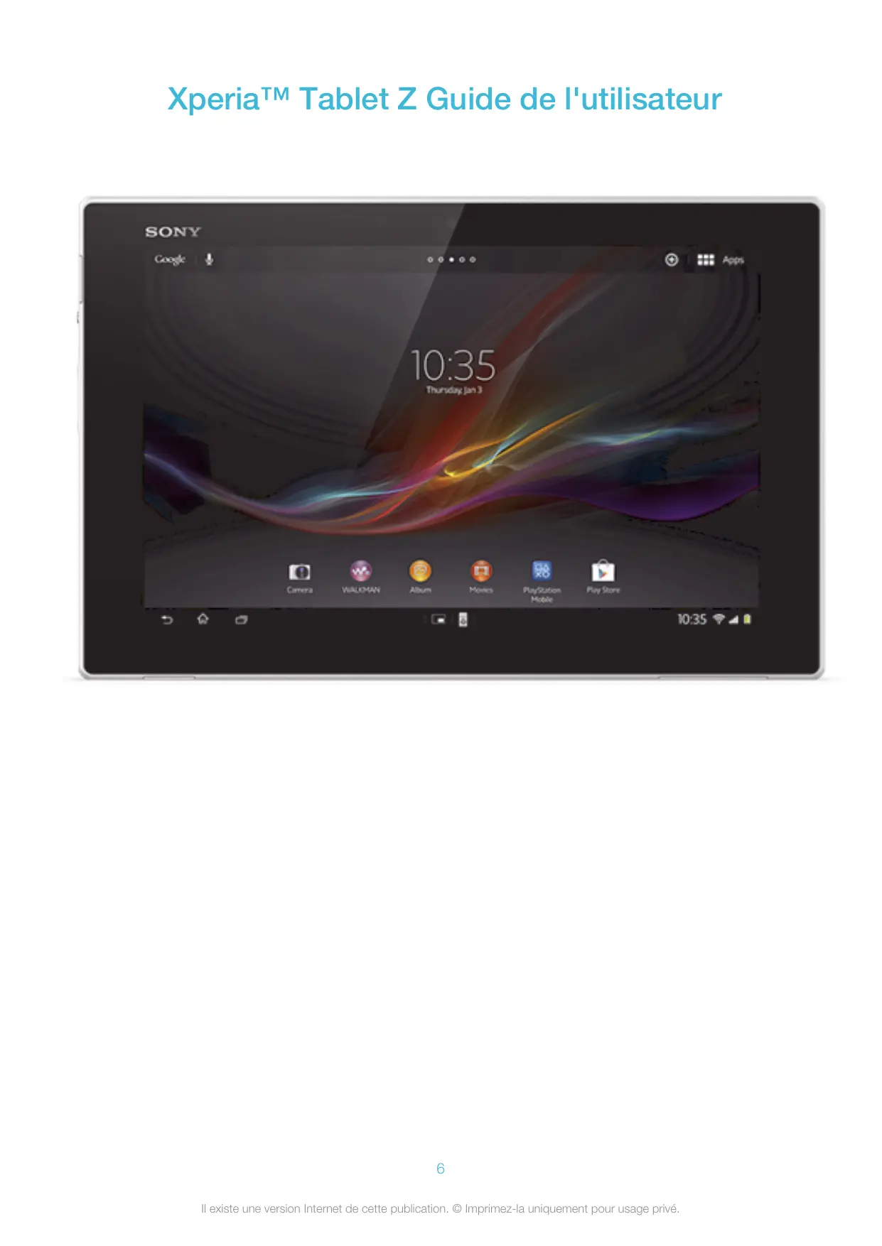 Il existe une version Internet de cette publication. © Imprimez-la uniquement pour usage privé. Xperia™ Tablet Z Guide de l'utilisateur