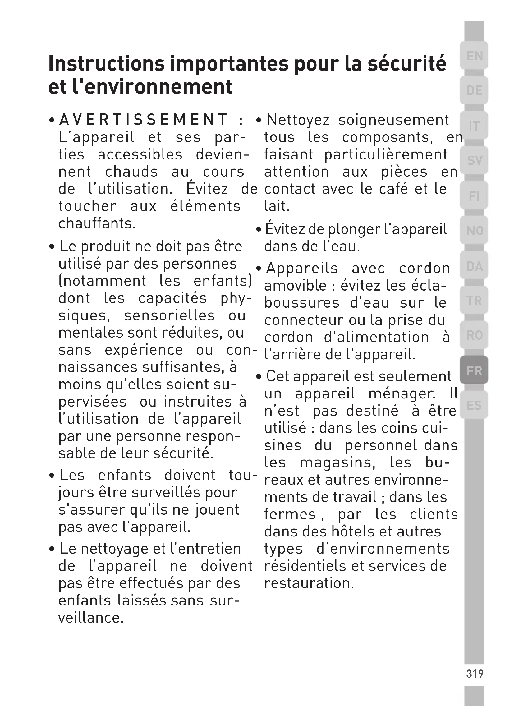 - Leprésentappareilaété conçuàdesfinsdomes- tiquesuniquement(envi- ron3000tassespar an). Touteautreutilisationest considérée comme inap- propriéeetdanscecas,la garantie ne s’appliquera pas.