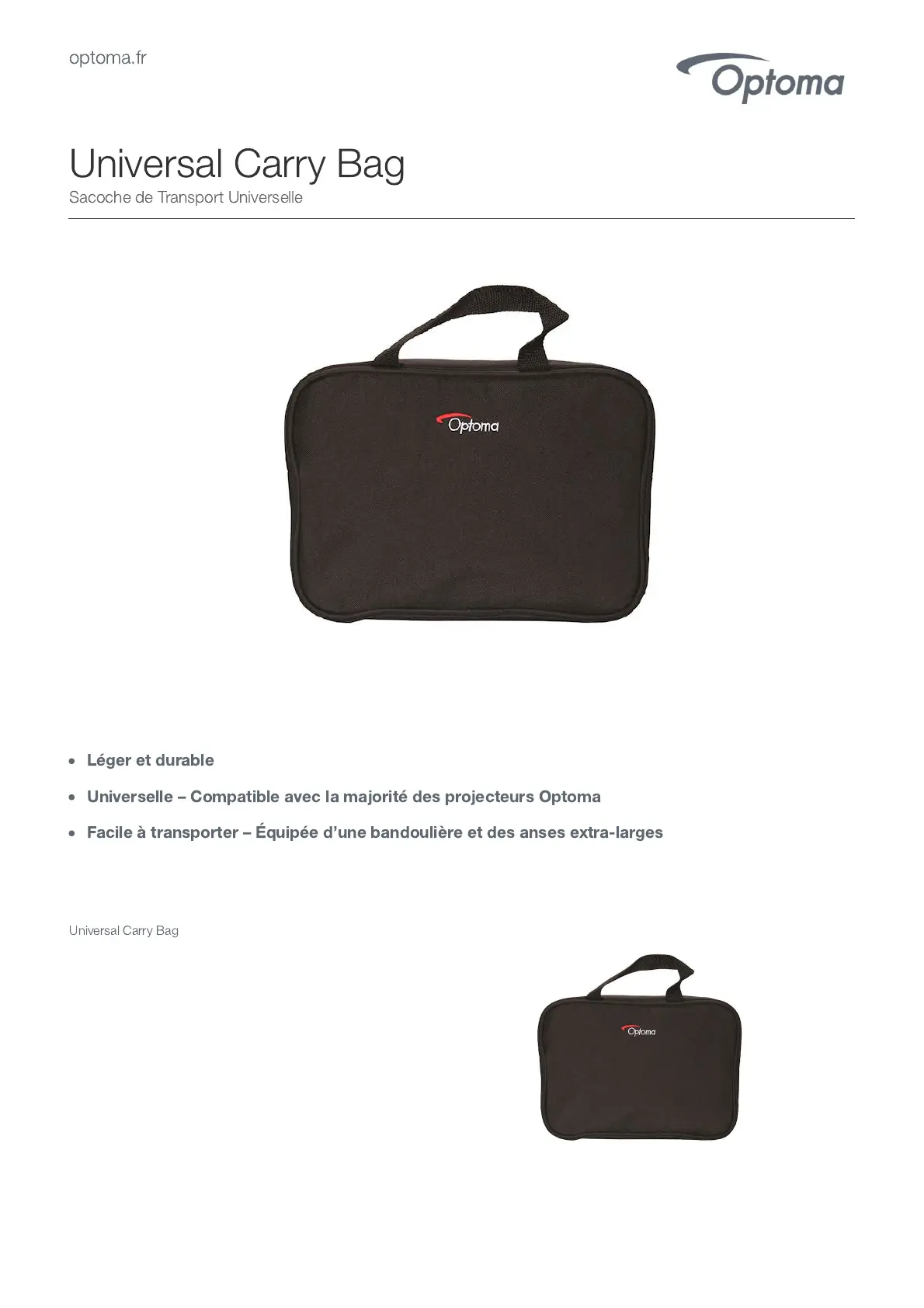 Universal Carry Bag - Accessoire de projecteur OPTOMA - Notice d'utilisation et mode d'emploi gratuit