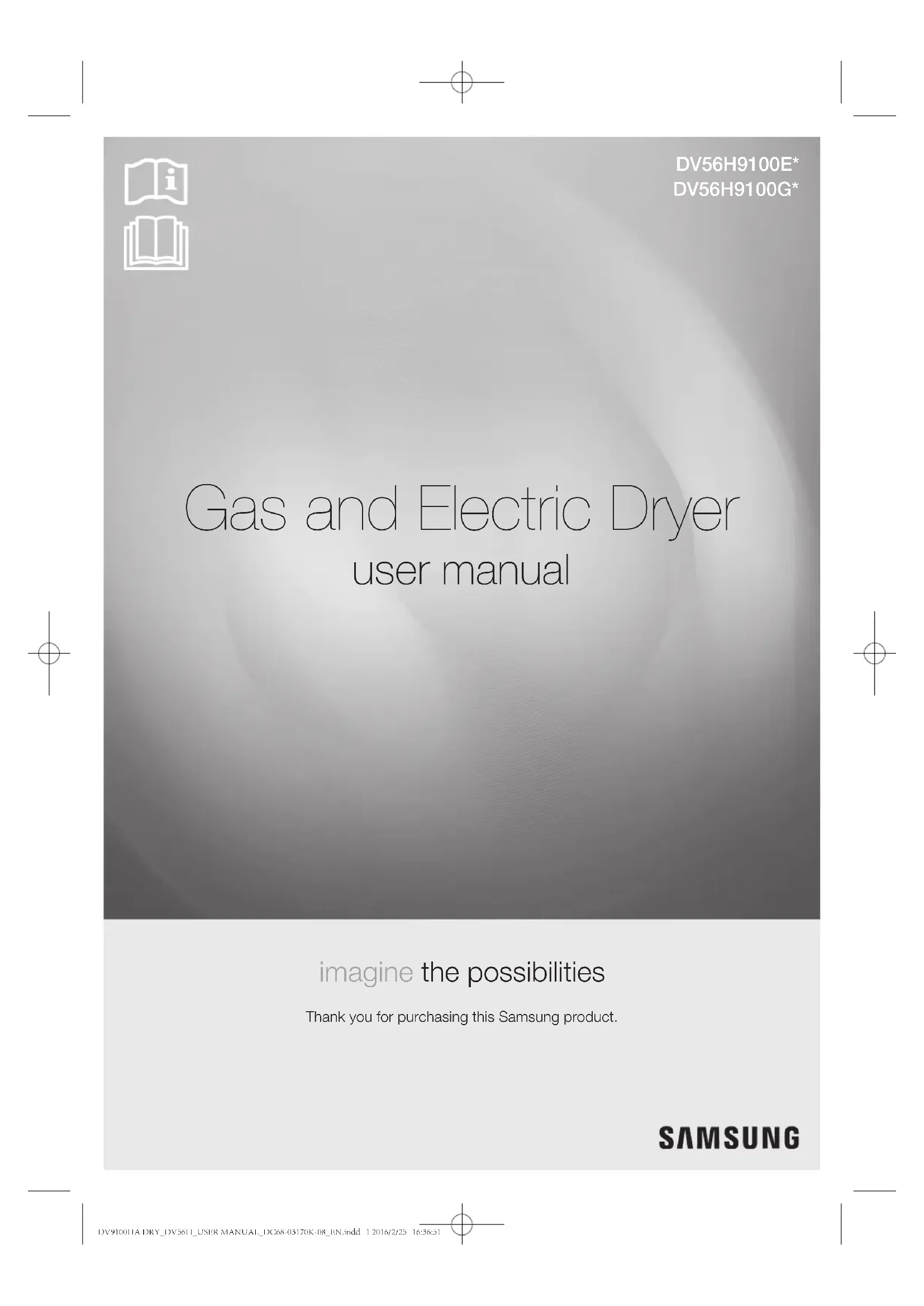 Les visites par un Ingénieur Service pour expliquer les fonctions, l'entretien ou l'installation ne sont pas couvertes par la garantie. Contactez s'il vous plaît votre agent Samsung pour vous aider à régler ces problèmes. garantie (CANADA) DV9100HA DRY_DV56H_USER MANUAL_DC68-03170K-08_CFR.indd 40 2016/2/25 16:38:38mémo DV9100HA DRY_DV56H_USER MANUAL_DC68-03170K-08_CFR.indd 41 2016/2/25 16:38:38mémo DV9100HA DRY_DV56H_USER MANUAL_DC68-03170K-08_CFR.indd 42 2016/2/25 16:38:38mémo DV9100HA DRY_DV56H_USER MANUAL_DC68-03170K-08_CFR.indd 43 2016/2/25 16:38:38DES QUESTIONS OU DES COMMENTAIRES ? paYs appeleZ le ou rendeZ-Vous sur le site U.S.A 1-800-SAMSUNG (726-7864) www.samsung.com/us/support CANADA 1-800-SAMSUNG (726-7864) www.samsung.com/ca/support (English) www.samsung.com/ca_fr/support (French) MEXICO 01-800-SAMSUNG (726-7864) www.samsung.com/mx/support N° code DC68-03170K-08_CFR Les visites par un Ingénieur Service pour expliquer les fonctions, l'entretien ou l'installation ne sont pas couvertes par la garantie. Contactez s'il vous plaît votre agent Samsung pour vous aider à régler ces problèmes. DV9100HA DRY_DV56H_USER MANUAL_DC68-03170K-08_CFR.indd 44 2016/2/25 16:38:38Secadora a gas y eléctrica manual del usuario imagine las posibilidades Gracias por adquirir este producto Samsung. DV56H9100E* DV56H9100G* DV9100HA DRY_DV56H_USER MANUAL_DC68-03170K-08_MES.indd 1 2016/2/25 16:39:42Español - 2 contenido instalación de la secadora