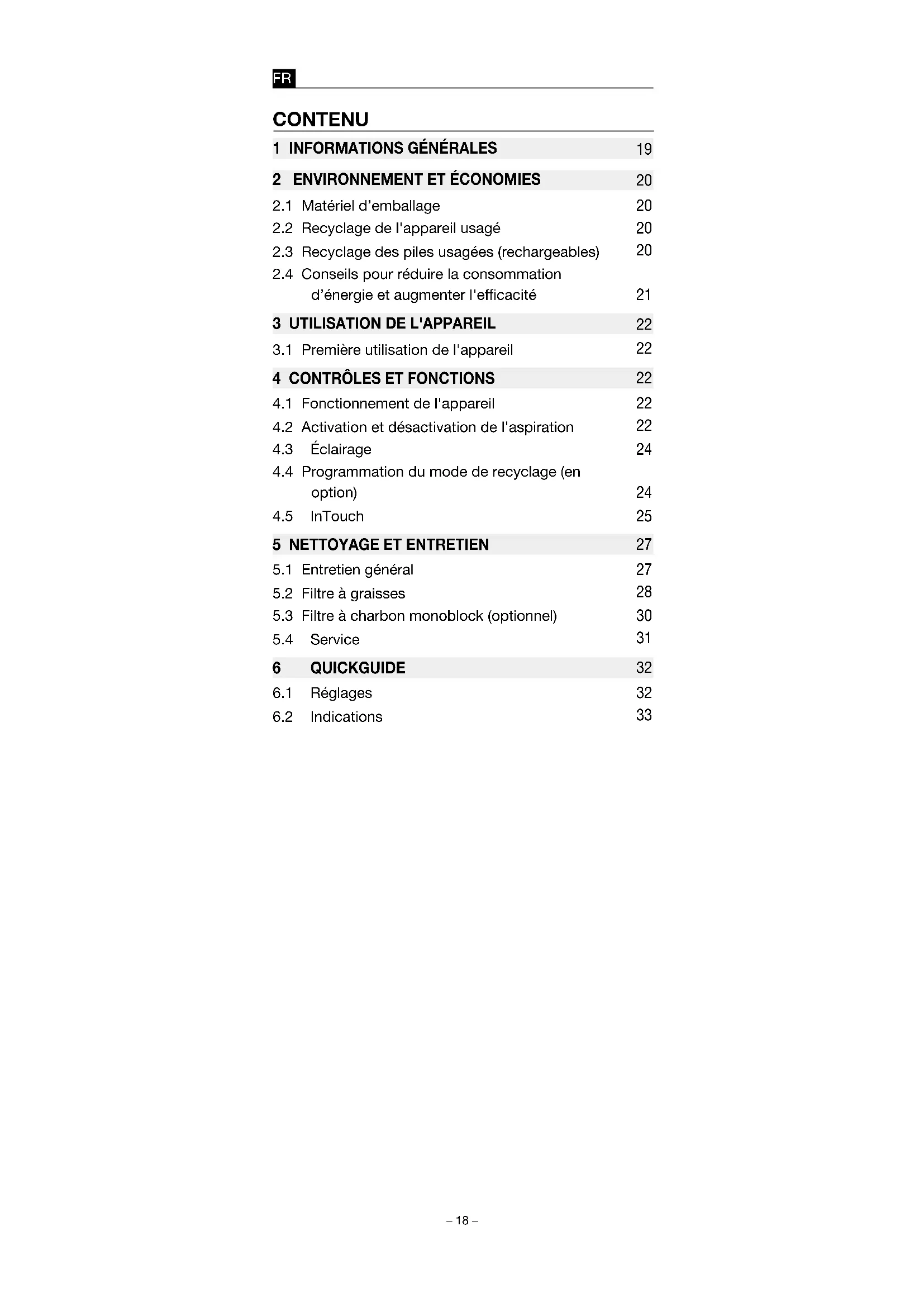 Veillez au maintien de la propreté du / des filtre(s) afin d'optimiser la filtration des graisses et l'ecacité du filtrage des odeurs,
