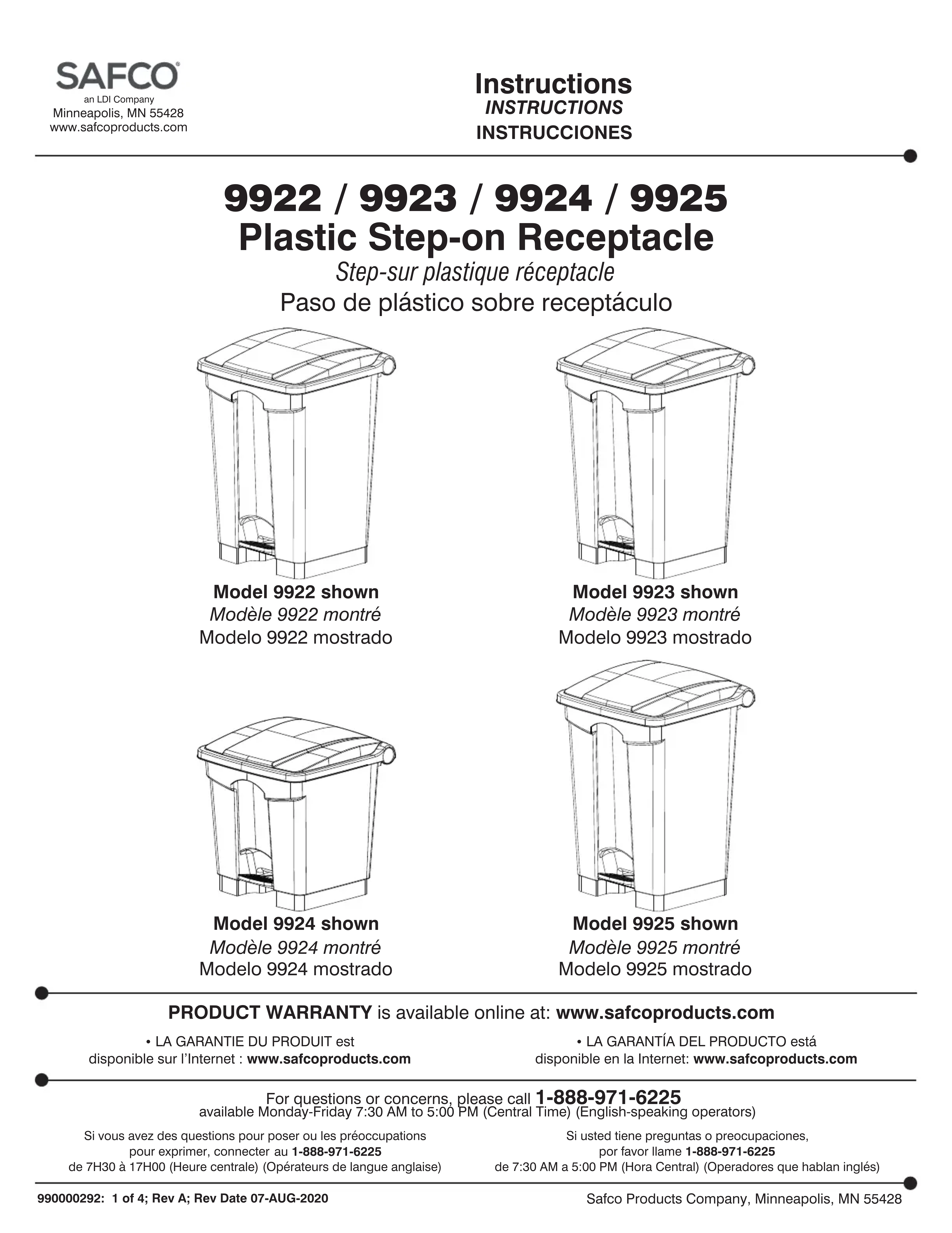 Plastic StepOn 9923 - Poubelle Safco - Notice d'utilisation et mode d'emploi gratuit