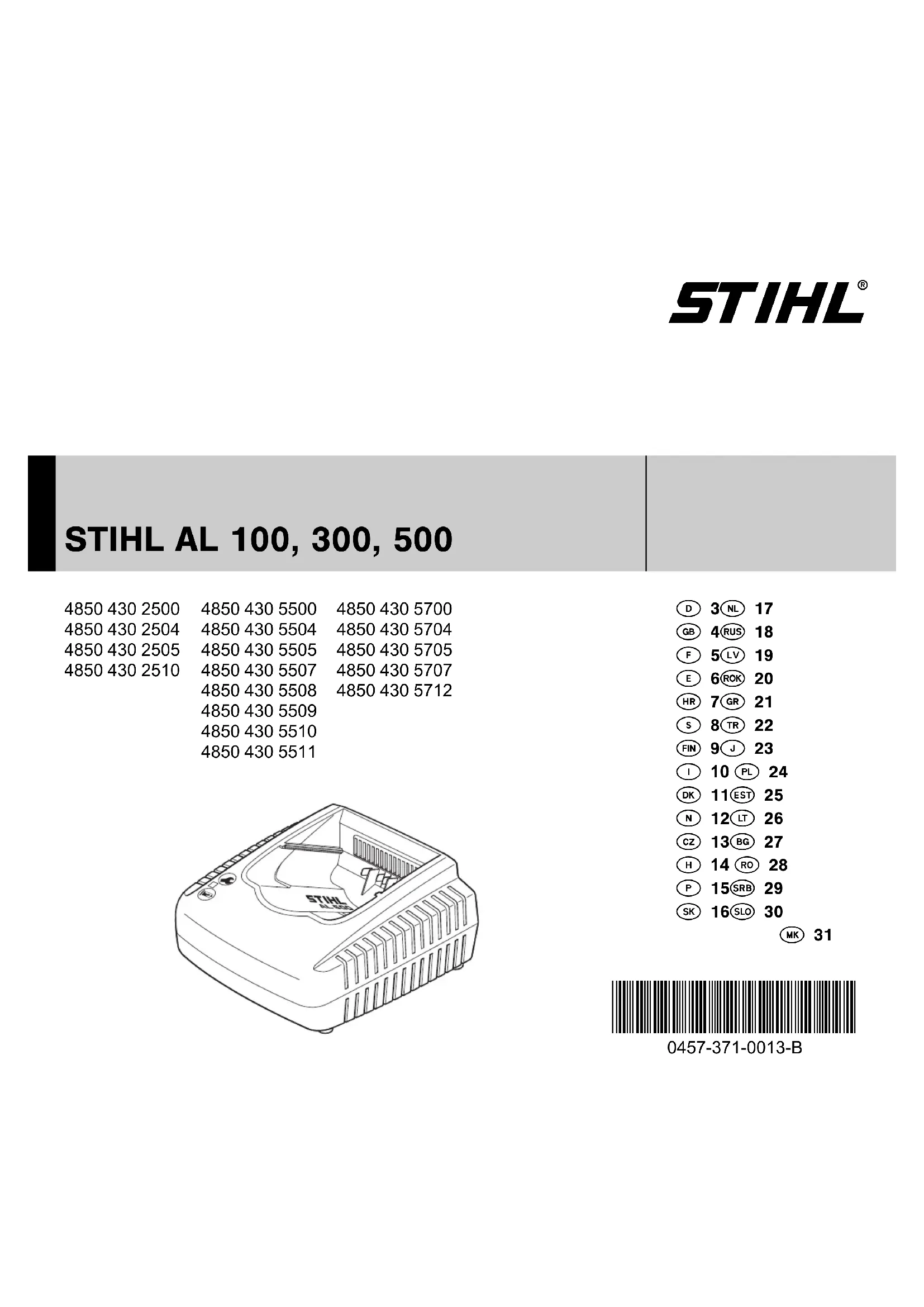 AL 300 - Chargeur de piles STIHL - Notice d'utilisation et mode d'emploi gratuit